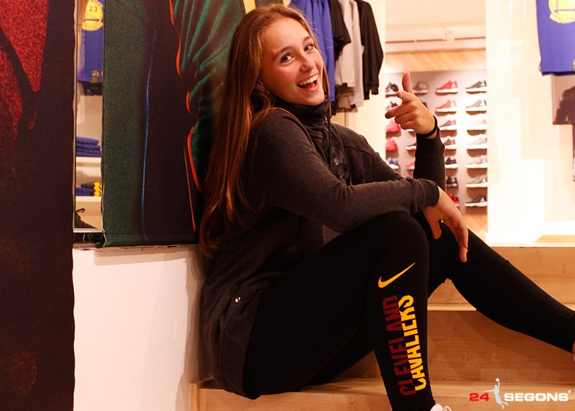 No todo van a ser juego, también tenemos outfits para ir o volver de los entrenos o para ir por la calle luciendo colores NBA. En nuestro quinto look vamos a vestir a Claudia con una sudadera que a la par de ser muy calentita tiene un corte que queda genial en Women, para finalizar con unas mallas de los Cavs (también disponibles en Warriors).
