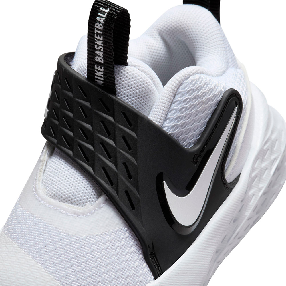 Baby Nike Team Hustle D 12 White. Les Hustle D són les sabatilles de bàsquet perfectes per trobar l'equilibri a la pista i gaudir d'un ajustament ferm i còmode en segons. La corretja permet obrir les sabatilles completament i aconseguir un ajustament cenyit en un obrir i tancar dulls. L'escuma suau proporciona una sensació elàstica i esmorteïda, mentre que la sola exterior de goma ofereix adherència i flexibilitat per jugar amb seguretat a múltiples superfícies.