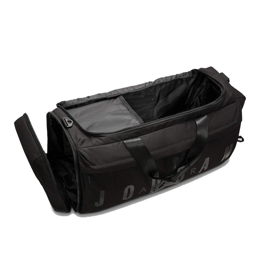 Bossa Jordan Velocity Duffle 69L. Triple Black. Tant si necessites una manera de portar la teva equipació de joc com una bossa de viatge més espaiosa, la nova Jordan Air Velocity Duffle Medium és perfecta per a tu. El compartiment principal amb cremallera té una butxaca interior per ajudar-te a mantenir els objectes més petits al seu lloc, mentre que el compartiment per a sabates de la zona lateral t'ajuda a mantenir netes les coses de l'interior.