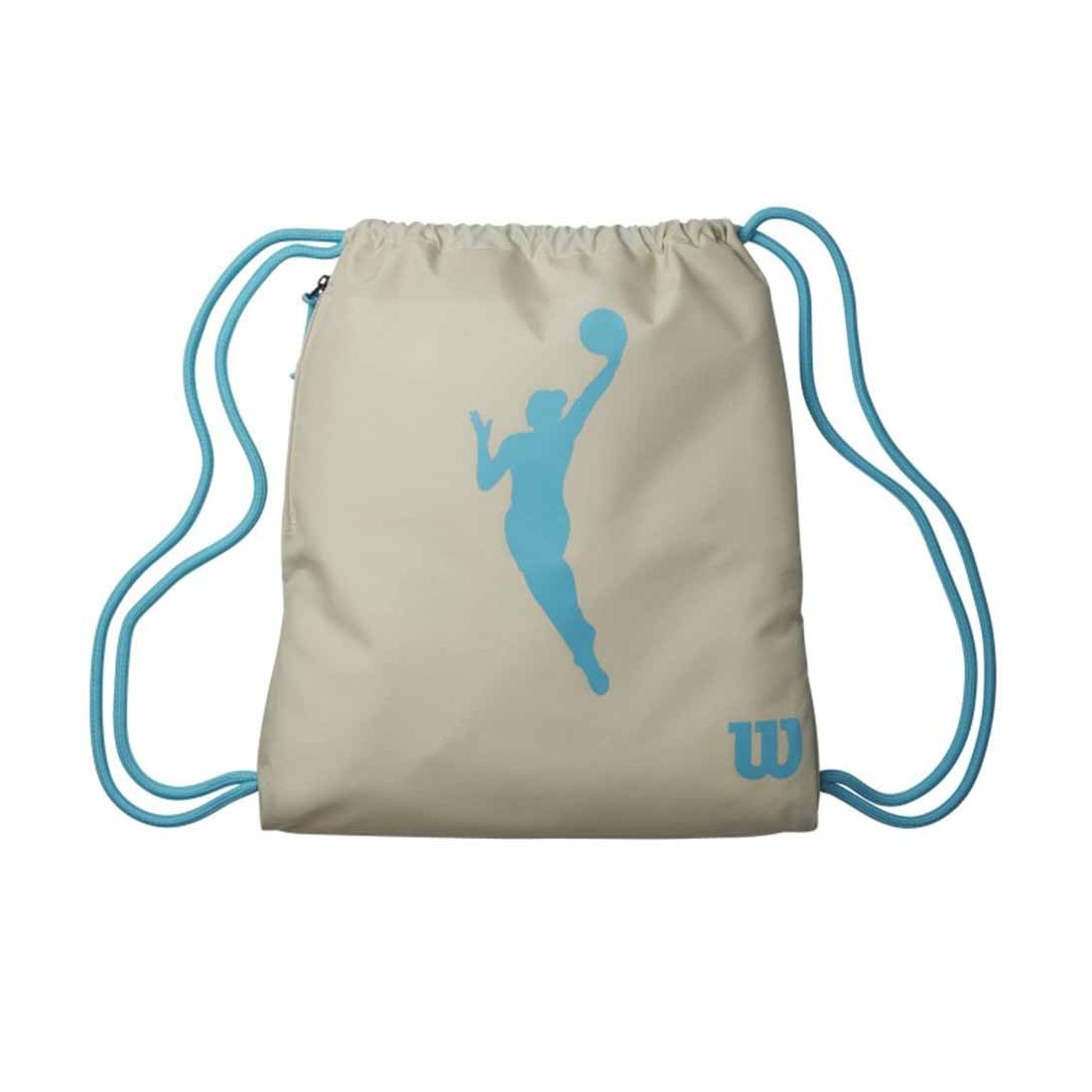 Bossa WNBA Heir Sport Drawstring. Bossa d'esport dissenyada per als que busquen funcionalitat i estil a les seves activitats esportives. Amb un compartiment principal espaiós, és prou gran com per allotjar una pilota de bàsquet de mida oficial. El sistema de tancament amb cordons d'alta resistència permet una obertura i tancament ràpids i segurs. Fabricada amb materials duradors, aquesta bossa presenta un disseny en colors beix i turquesa, i porta el logotip oficial de la WNBA, reflectint la teva passió pel bàsquet femení. Ideal per a entrenaments, partits o ús diari, combina practicitat i un toc distintiu.