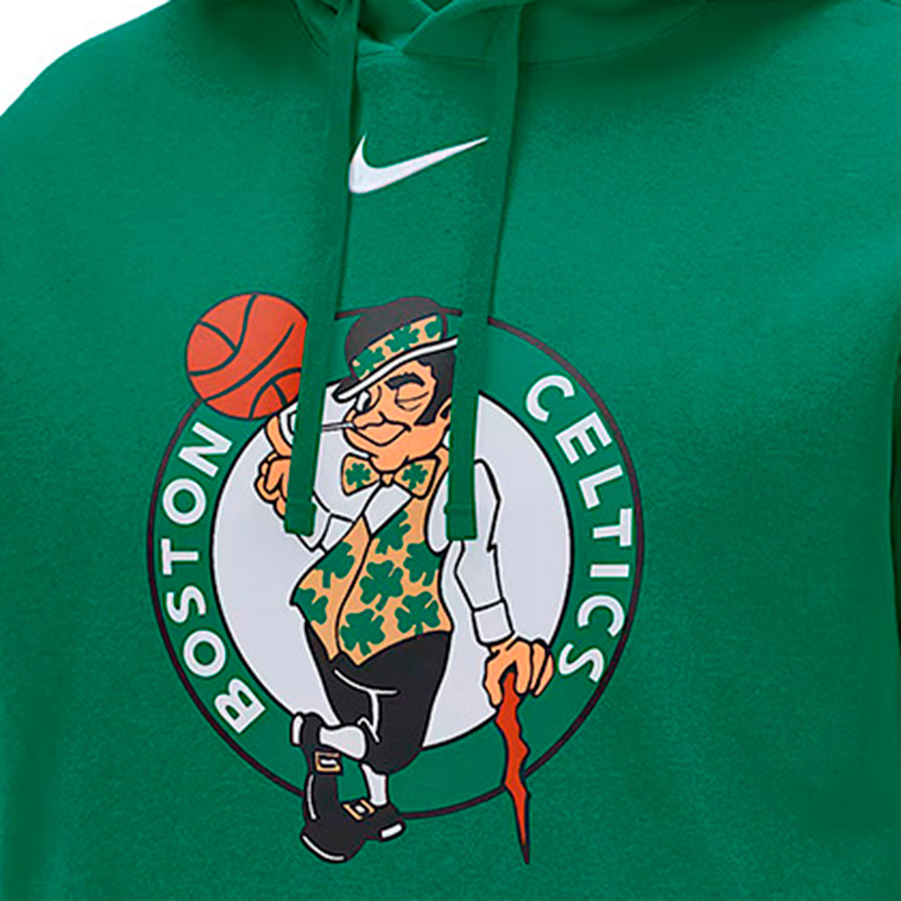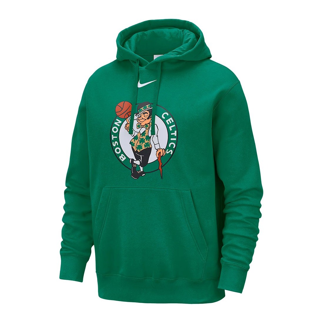 Dessuadora Junior Boston Celtics Club Fleece Green. Aquesta dessuadora Club Pullover Hoodie ofereix un equilibri ideal entre confort i estil esportiu. Confeccionada amb pelfa de barreja cotó polièster, presenta un tacte suau a l'interior i una superfície exterior més llisa que ajuda a mantenir una aparença neta. La caputxa amb cordó ajustable ofereix protecció addicional davant del vent en els dies frescos, mentre que la àmplia butxaca tipus cangur permet resguardar les mans o guardar objectes petits. Els seus punys i vora acanalats asseguren que la peça romangui al seu lloc, evitant que pugi en moure's. Al pit hi llueix un disseny frontal amb elements gràfics de l'equip (nom, logotip, insígnia local), atorgant identitat sense presentar un missatge genèric.