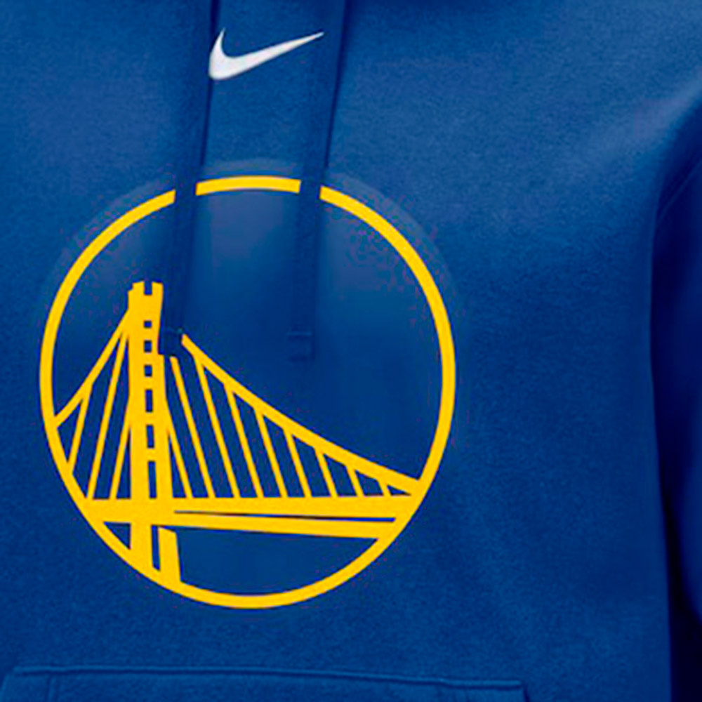 Dessuadora Junior Golden State Warriors Club Fleece Royal. Aquesta dessuadora Club Pullover Hoodie ofereix un equilibri ideal entre confort i estil esportiu. Confeccionada amb pelfa de barreja cotó polièster, presenta un tacte suau a l'interior i una superfície exterior més llisa que ajuda a mantenir una aparença neta. La caputxa amb cordó ajustable ofereix protecció addicional davant del vent en els dies frescos, mentre que la àmplia butxaca tipus cangur permet resguardar les mans o guardar objectes petits. Els seus punys i vora acanalats asseguren que la peça romangui al seu lloc, evitant que pugi en moure's. Al pit hi llueix un disseny frontal amb elements gràfics de l'equip (nom, logotip, insígnia local), atorgant identitat sense presentar un missatge genèric.