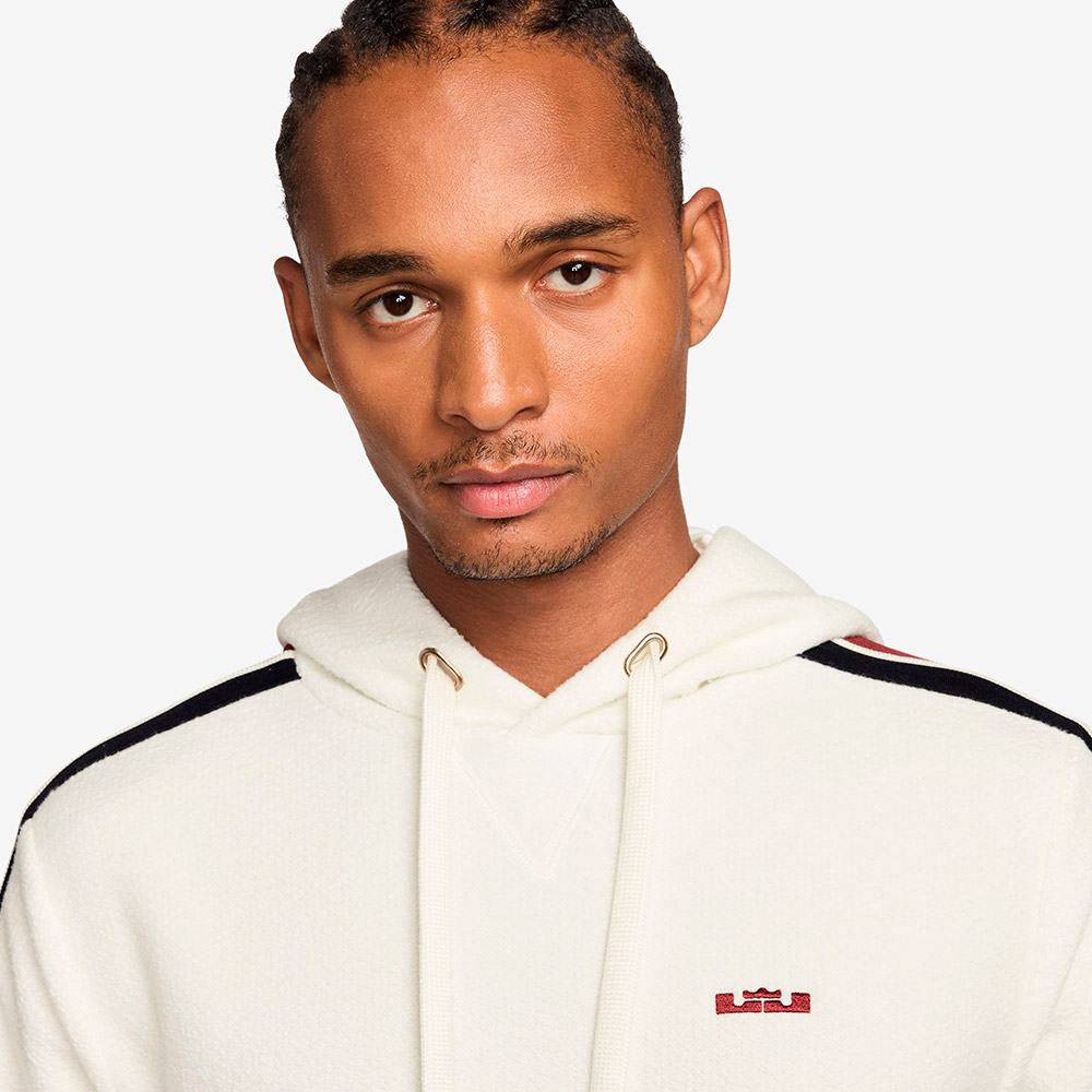Dessuadora Nike LeBron James Standard Issue Therma-FIT Sail. Rendeix homenatge al regnat de LeBron amb aquesta dessuadora amb caputxa Therma-FIT. El teixit Fleece dʻalt rendiment i densitat ofereix una calidesa premium. A més, l'etiqueta "Forever King" ret homenatge a la seva prolongada supremacia a la pista.