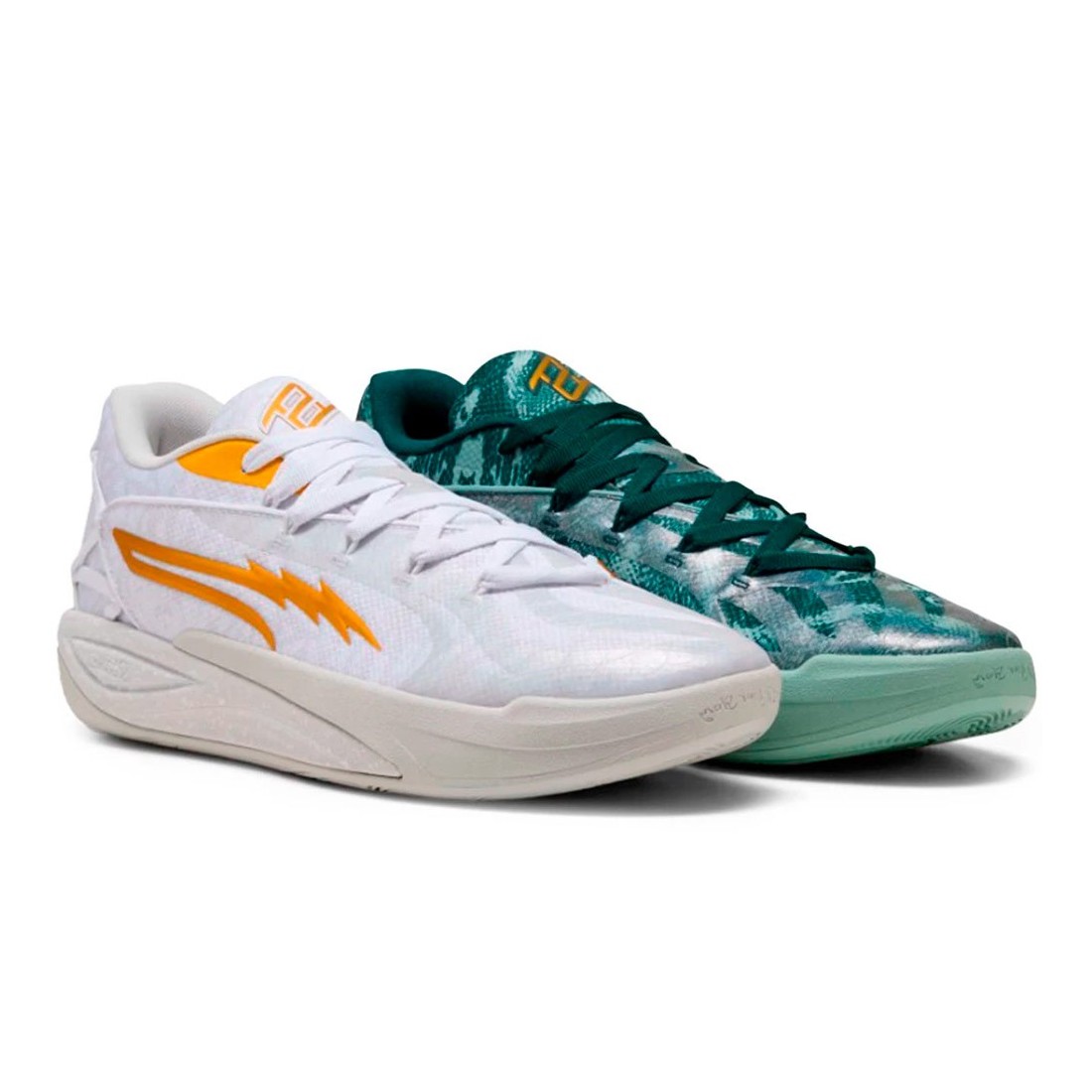 El concepte de refracció de llum es materialitza amb materials iridiscents i cristal·litzats que adornen la icònica Formstrip de Puma i la malla de l'empenya, aportant un efecte cridaner i lluminós. Amb un disseny que no passa desapercebut, aquestes sabatilles són ideals per als que volen destacar tant dins com fora de la pista.