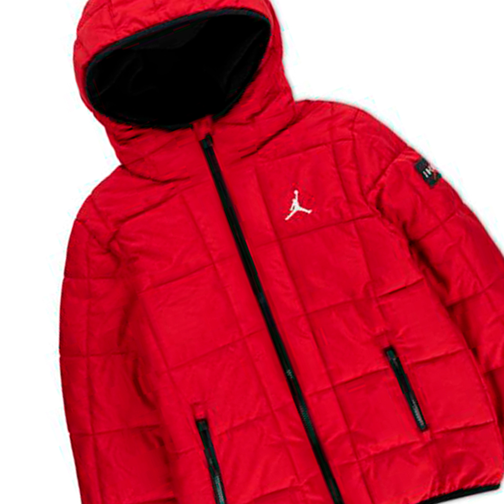 Jaqueta Jordan Essential Midweight Puffer Gym Red. La jaqueta júnior Jordan és una peça ideal per mantenir l'estil i la comoditat els dies més frescos. Confeccionada amb materials resistents i un interior suau, proporciona abric sense renunciar a la llibertat de moviment. El seu disseny amb cremallera completa permet posar-la i treure fàcilment, mentre que les butxaques laterals afegeixen funcionalitat. El logotip Jordan destaca al pit, aportant un look esportiu i modern perfecte per als joves fans del bàsquet.