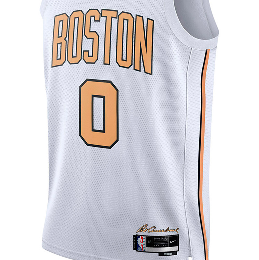 Jayson Tatum Boston Celtics 25-26 City Edition Swingman. Ser un Celtic és ser algú que treballa dur, mai no es rendeix i mai posa excuses. És un estàndard que perdura des del passat fins al present i el futur. Les constants? Guanyar. I l'or. Aquest que es transmet de generació en generació mentre cau el confeti. Aquest uniforme City Edition 2025-26 dels Boston Celtics està adornat amb detalls daurats que representen l'èxit, l'èxit i el triomf, valors que no només formen part de l'ADN de la franquícia, sinó que transcendeixen el temps.