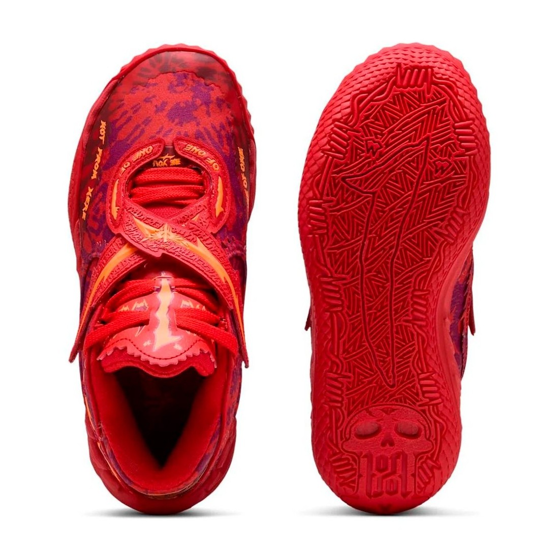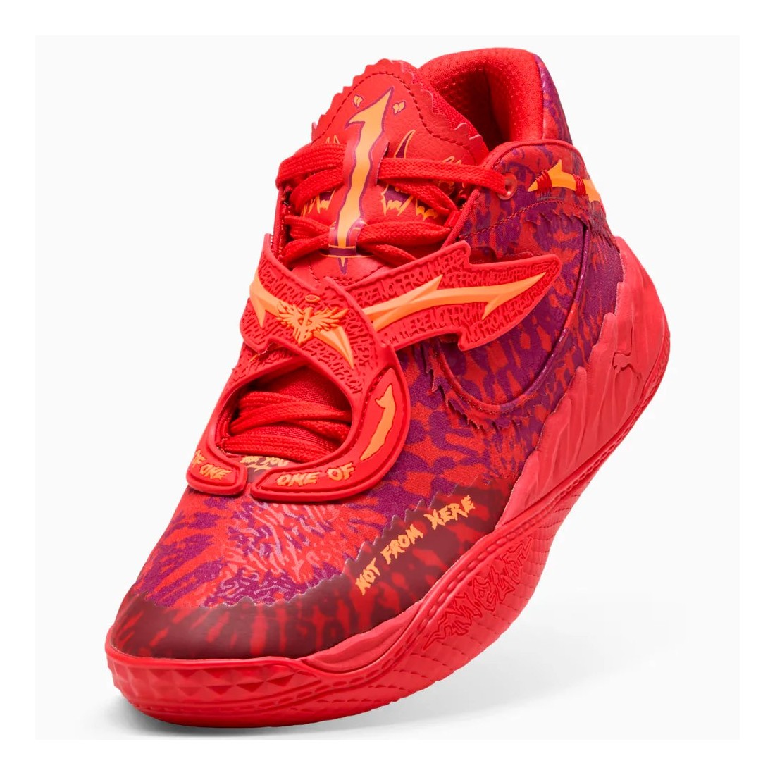 Junior Puma MB.05 Crowd Surf. Les PUMA MB.05 són l'última col·laboració amb LaMelo Ball, dissenyades per als que busquen rendiment i estil a la pista i fora. Destaquen per la seva entresola amb tecnologia NITROFOAM™, que ofereix màxim amortiment i resposta explosiva. La seva part superior en mesh tècnic aporta lleugeresa i transpirabilitat, mentre que els detalls únics –com el patró del número “1”, gràfics inspirats en els tatuatges de LaMelo i una sola amb calavera integrada– les converteixen en una peça exclusiva. Modernes, atrevides i còmodes, estan pensades per als que juguen fort i marquen tendència.