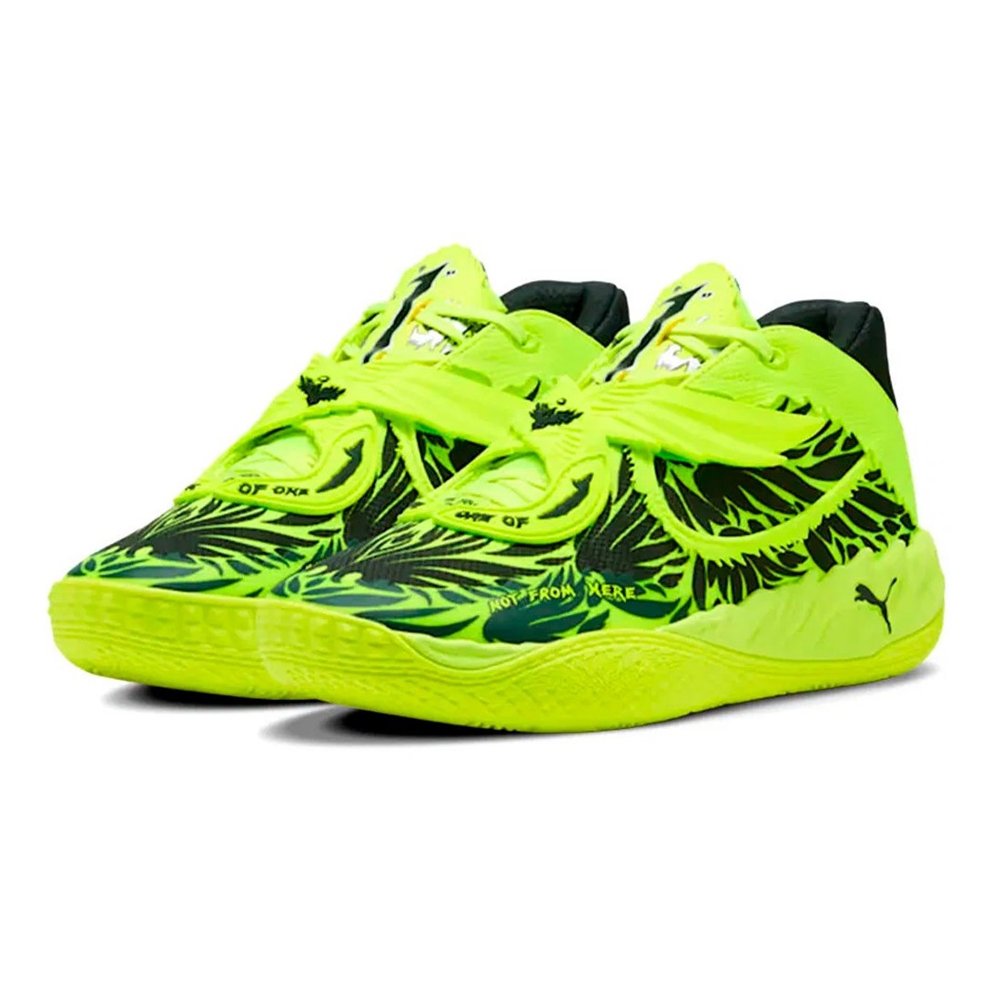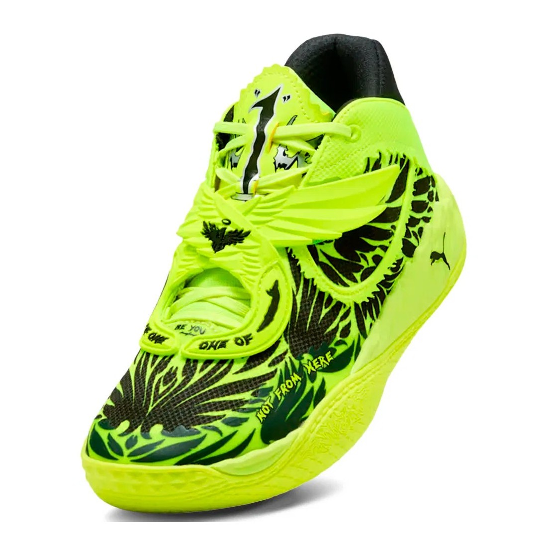 Junior Puma MB.05 Voltage. Les PUMA MB.05 són l'última col·laboració amb LaMelo Ball, dissenyades per als que busquen rendiment i estil a la pista i fora. Destaquen per la seva entresola amb tecnologia NITROFOAM™, que ofereix màxim amortiment i resposta explosiva. La seva part superior en mesh tècnic aporta lleugeresa i transpirabilitat, mentre que els detalls únics –com el patró del número “1”, gràfics inspirats en els tatuatges de LaMelo i una sola amb calavera integrada– les converteixen en una peça exclusiva. Modernes, atrevides i còmodes, estan pensades per als que juguen fort i marquen tendència.