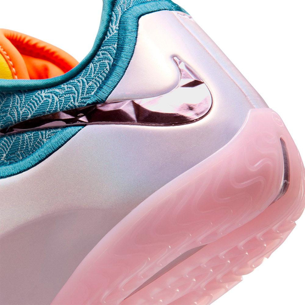 Un campionat va posar LeBron al punt de mira com un gran jugador. Però títols consecutius? Contra una de les millors dinasties de la història? Va ser llavors quan el seu llegat va quedar immortalitzat. Aquest disseny especial recupera l'ona de Miami, amb un gràfic de palmeres repetit a la part superior. Les picades d'ullet a alguns dels teus models favorits de LeBron durant la seva època als Heat també estan per tot arreu, incloent el logotip Swoosh inclinat i invertit i la icònica corona "LJ".
