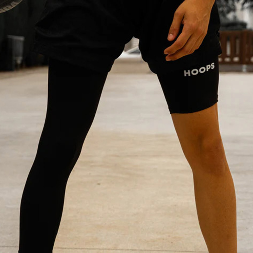 Malles Hoops One Leg Sleeve Black. L'One Leg Sleeve de Hoops és una malla de compressió dissenyada especialment per als jugadors que busquen suport en una sola cama. Fabricada amb polièster i elastà, ofereix compressió lleugera que millora la circulació, ajuda en la recuperació muscular i manté la cama calenta durant el joc. S'adapta ergonòmicament a la forma de la cama sense lliscar gràcies al seu ajustament cenyit i elàstic. Aquesta malla d'una cama aporta estil, funcionalitat i un toc professional inspirat en l'estètica dels hoopers.
