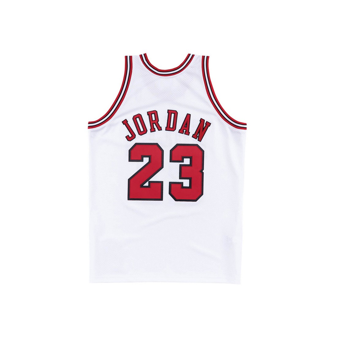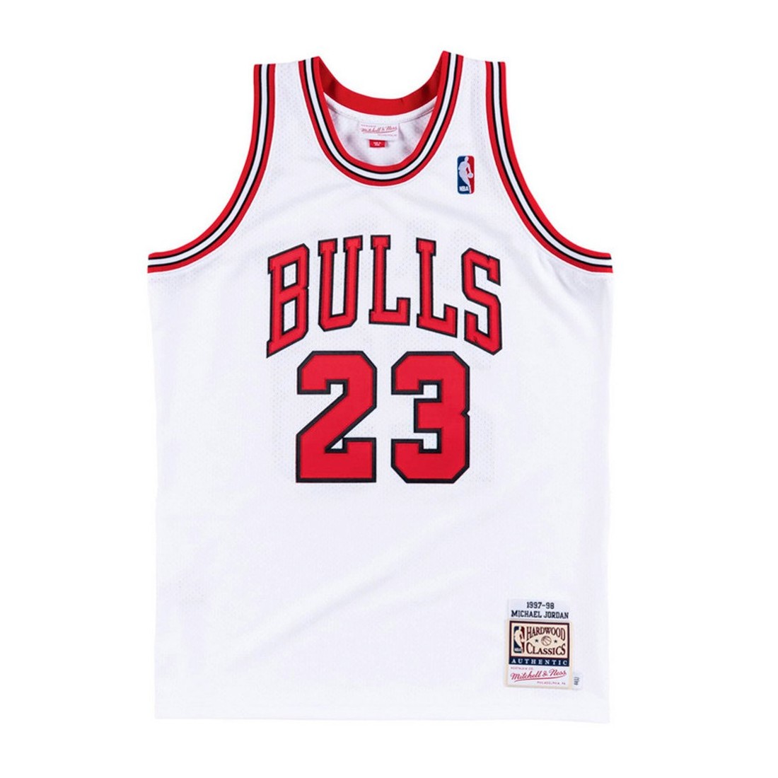 Michael Jordan Chicago Bulls 97-98 White Authentic. La temporada de 1997-98 va tenir un gran final per als Chicago Bulls de Michael Jordan, van aconseguir el seu sisè anell quan van derrotar als Utah Jazz 4-2. En aquesta ocasió, la marca Mitchell & Ness presenta aquesta samarreta que imita l'equipament en un partit en la llar de l'equip d'Illinois. Confeccionada amb teixits prèmium de malla i detalls únics, aquesta és l'opció perfecta per a jugar, entrenar i per a portar els colors d'una peça de roba que representa una part de la increïble història d'un dels millors equips de l'NBA.