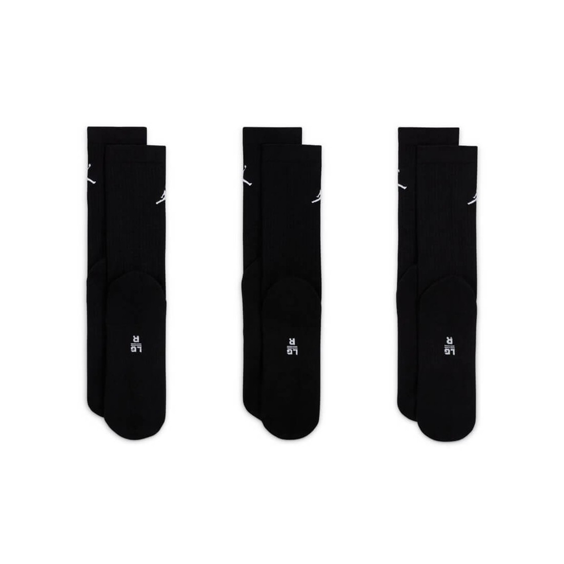 Mitjons Jordan Everyday Crew Black (3pk). Aquests mitjons Jordan suaus son imprescindibles per al dia a dia. El teixit Dri-FIT i la malla transpirable a la part superior del peu ajuden a mantenir la transpirabilitat, i la banda del pont del peu proporciona un ajustament cenyit.