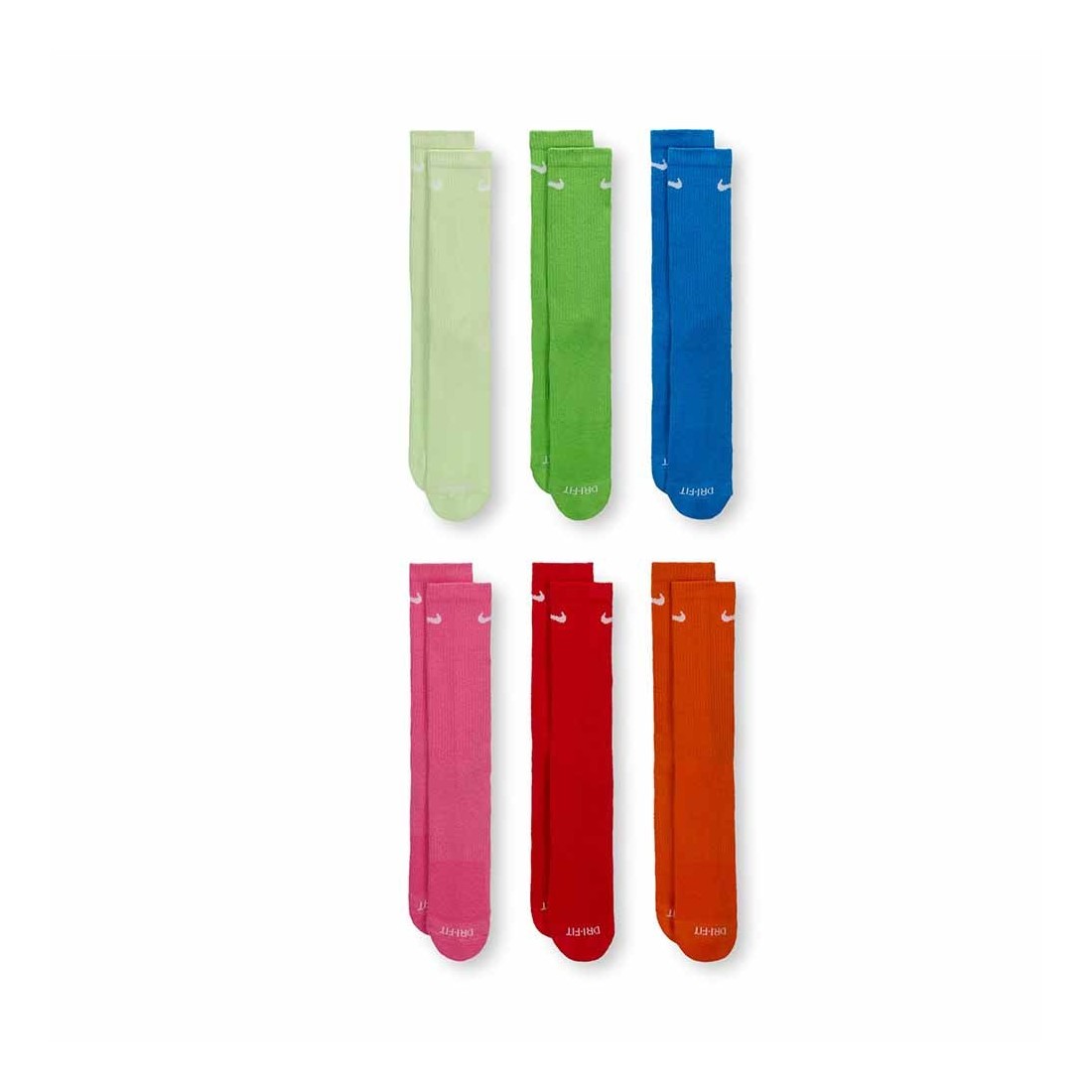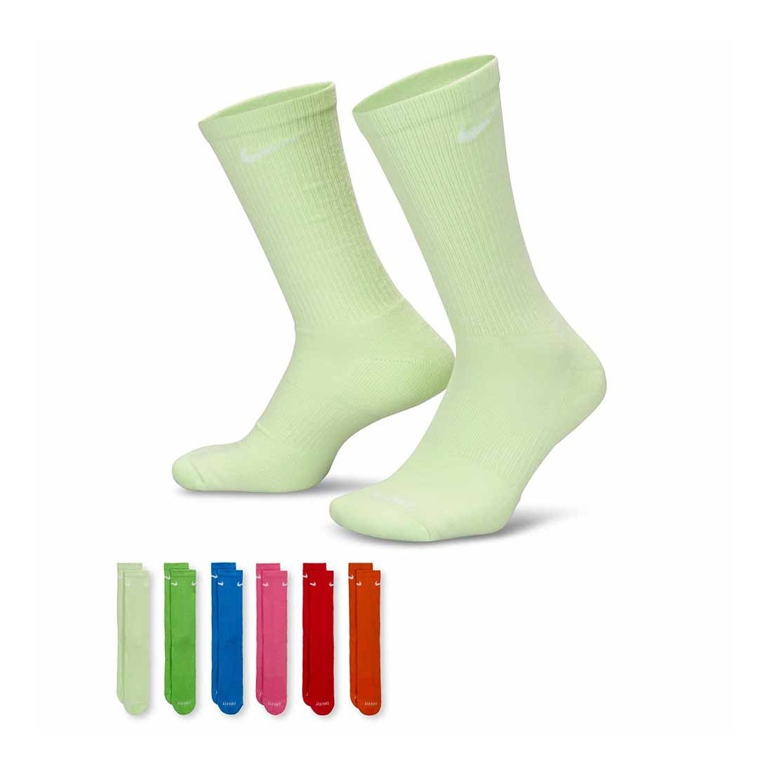 Mitjons Nike Everyday Plus Cushioned Training Crew Multi-Color Green Red. Els mitjons llargs d'entrenament Nike Everyday Plus Cushioned aporten comoditat al teu entrenament amb un amortiment addicional sota el taló i l'avantpeu i una banda cenyida amb subjecció al pont del peu.