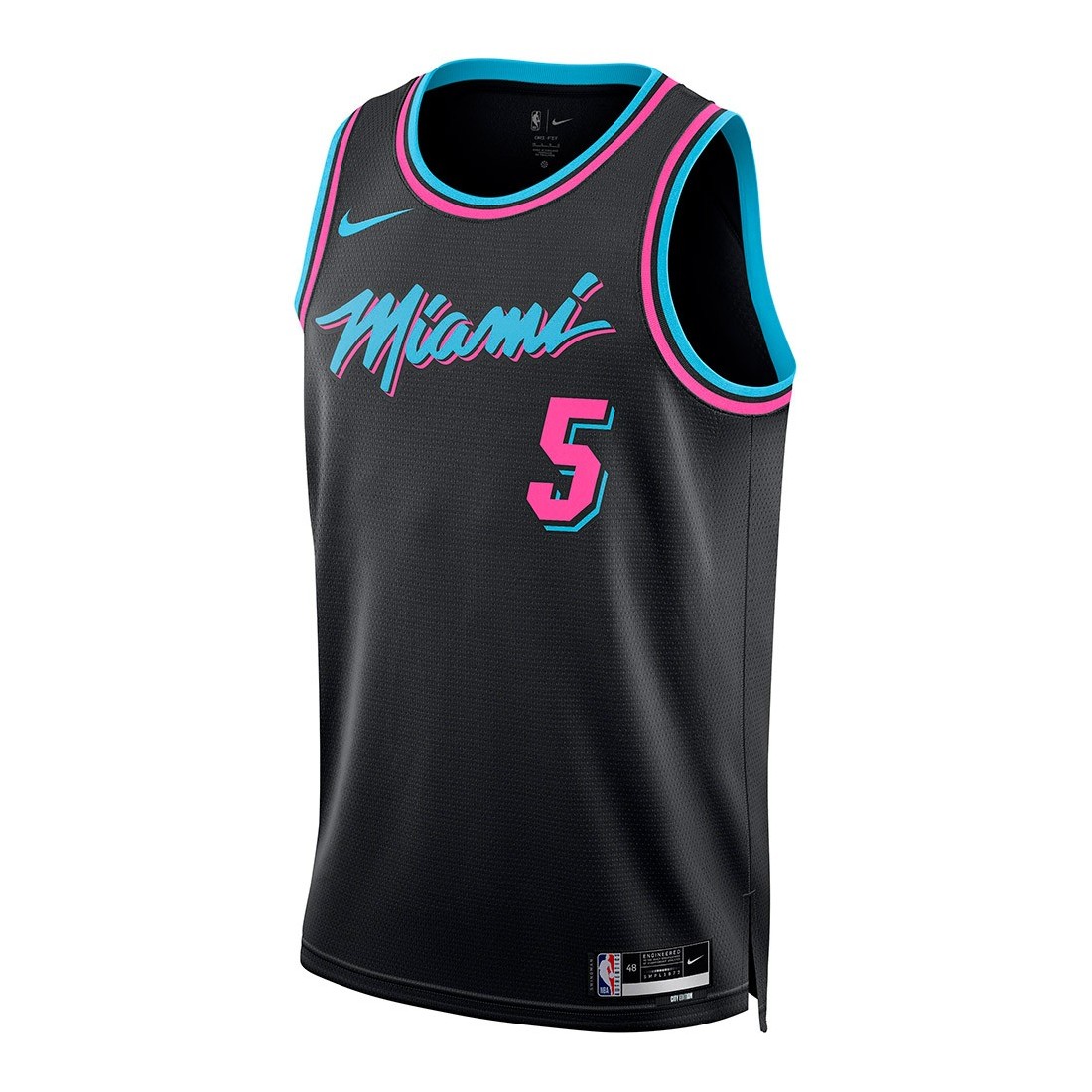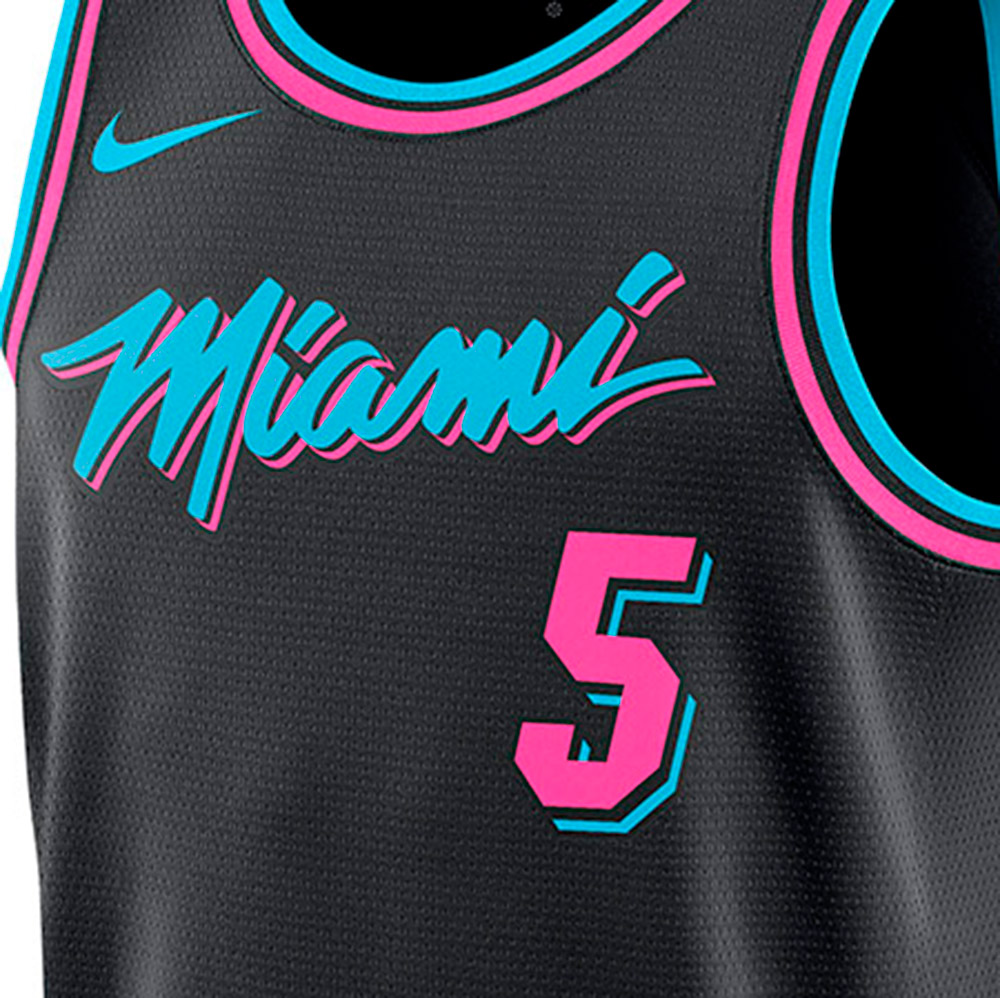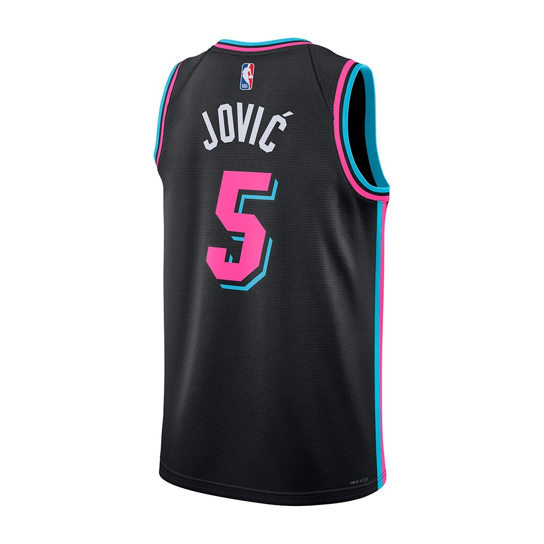 Nikola Jovic Miami Heat 25-26 City Edition Swingman. El sensacional i reeixit disseny City Edition de Miami torna per a una segona temporada. L'uniforme blanc va ser l'origen de tot, però l'Original Vice Nights negre representa el que va inspirar: com els aficionats el van personalitzar, el van reinventar i el van fer seu. Llueix l'icònic logo MIAMI (pres directament del rètol original del HEAT, el Miami Arena) i detalls en blau i rosa, símbols de la ciutat i de la marca HEAT.