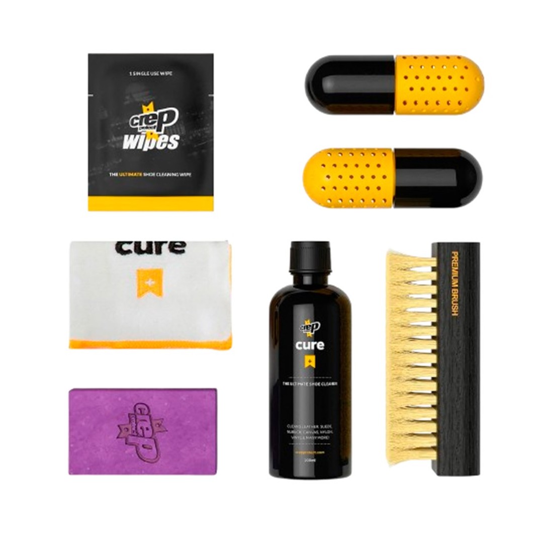 El paquet de neteja Crep Protect The Ultimate Box inclou una solució netejadora, un cepillo, un pa de microfibra, una goma de neteja, dos ambientadors en càpsules i sis toallites.
