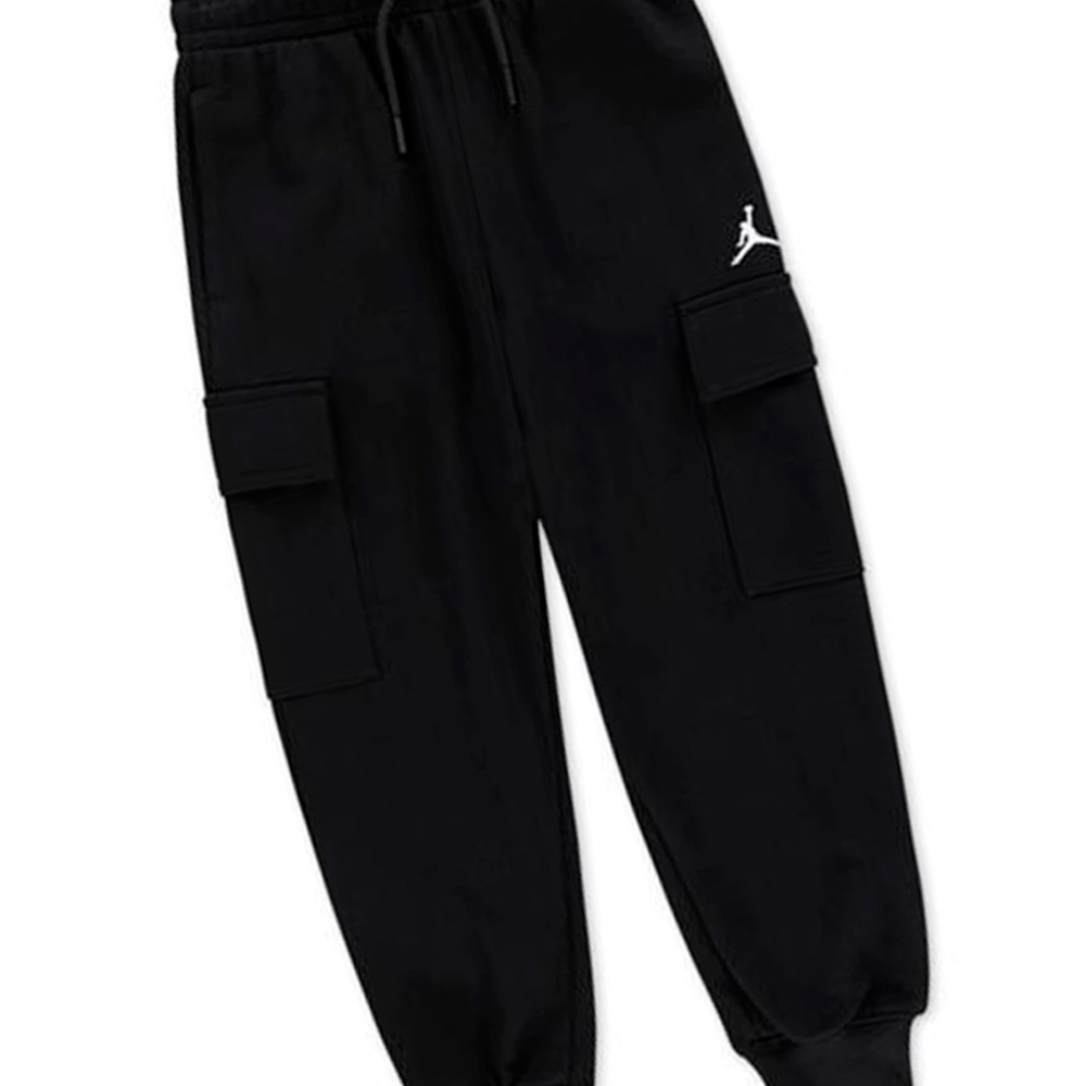 Pantalons Junior Brooklyn Cargo Black. Aquests pantalons Jordan càrrec júnior destaquen pel seu estil utilitari modern i funcional, perfecte per al dia a dia dels més joves. Confeccionats en un teixit resistent però còmode, ofereixen llibertat de moviment i durabilitat. Incorporen butxaques laterals àmplies que, a més d'afegir un look urbà, permeten guardar petits objectes amb seguretat. La seva cintura elàstica amb cordó ajustable garanteix un ajustament personalitzat i còmode durant tot el dia. El disseny amb detalls Jordan subtils converteix aquests pantalons en una peça versàtil que combina fàcilment amb samarretes, dessuadores o jaquetes.