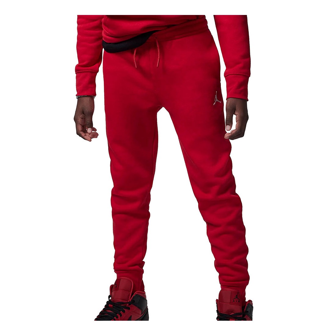 Pantalóns Junior Jordan Brooklyn Fleece Essentials Red. Aquests pantalons tenen una silueta clàssica i estan confeccionats amb un suau teixit Fleece de polièster i cotó per oferir suavitat a la part exterior i una sensació agradable a l'interior. Les cames entallades amb punys elàstics creen una sensació de seguretat i calidesa que s'adapta durant tot el dia.