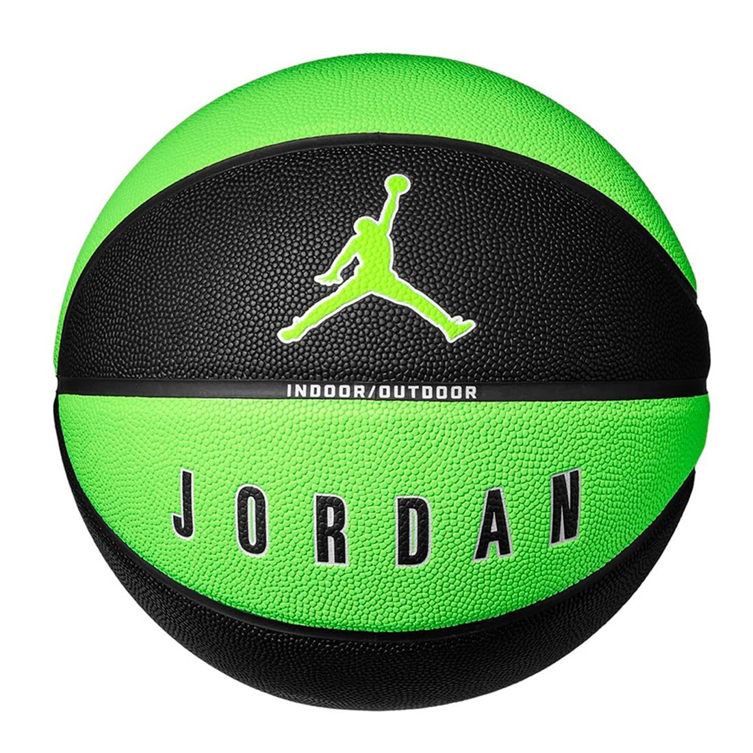 Pilota Jordan Ultimate 2.0 8P Green Black. La pilota de bàsquet Jordan Ultimate 2.0 8P està dissenyada per a ús en interiors i exteriors. Té una carcassa texturitzada i ranures profundes per a una subjecció i control precisos durant el joc.
