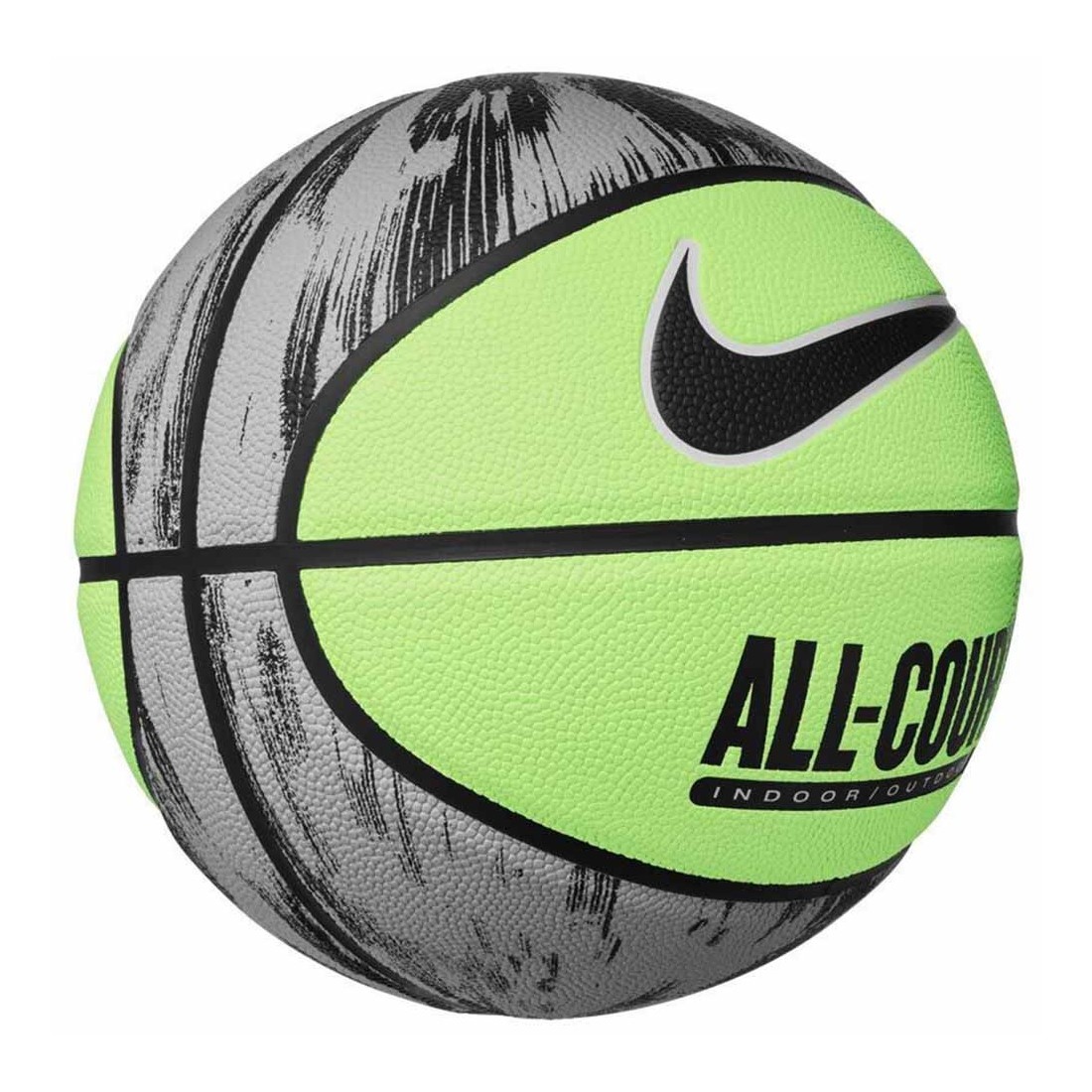 Pilota Nike Everyday All Court 8P Grafic Green Black. Demostra les teves habilitats amb la pilota de bàsquet Nike Everyday All-Court talla 7, ja sigui que estiguis al gimnàs oa l'asfalt. T'ofereix un disseny colorit i uns canals profunds li brinden una alineació i un control precisos de la mà, mentre que una superfície enganxosa l'ajuda a mantenir l'agafada.