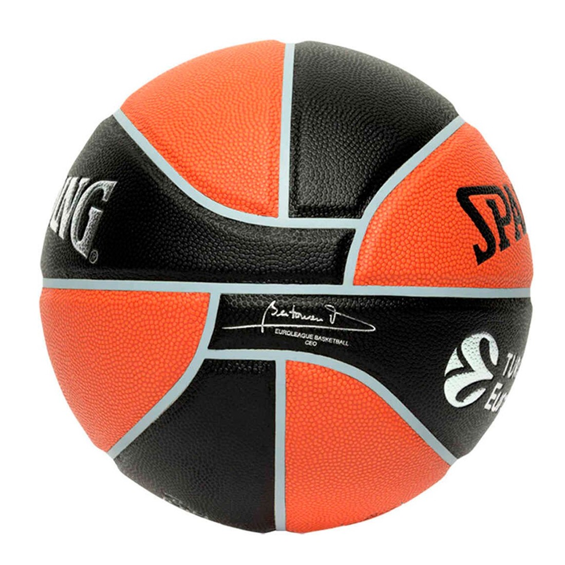 Pilota Spalding TF-1000 Euroleague Composite Sz7. La marca Spalding ha preparat una pilota de disseny clàssic amb el logotip de l'Eurolliga estampat de talla 7. Gràcies a la seva fabricació usant Composite li proporciona a aquesta pilota una gran durabilitat, un tacte rugós que incrementa l'adherència, i per descomptat, colors clàssics i un estampat identificatiu.