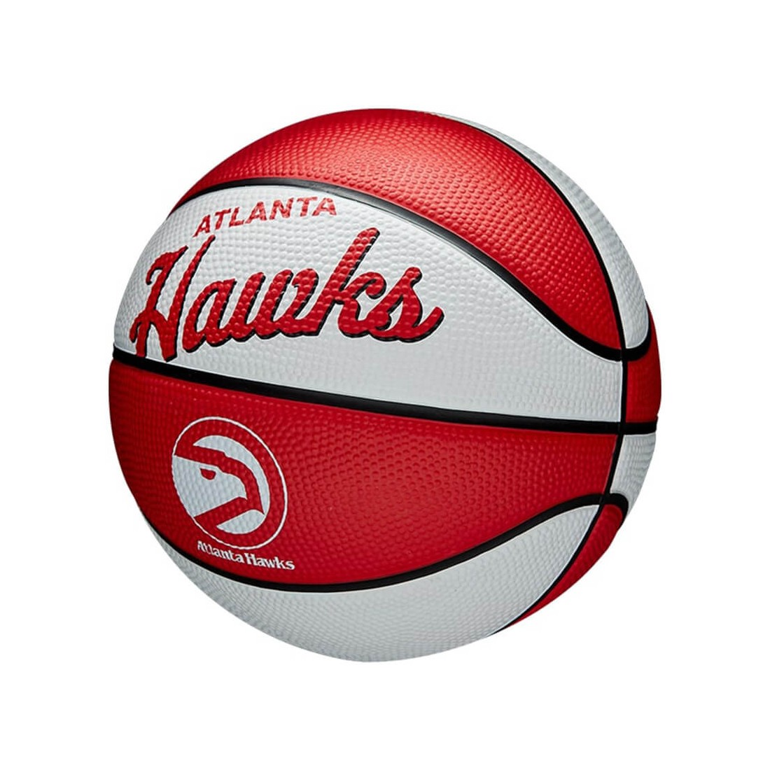 Pilota Wilson Atlanta Hawks NBA Team Retro Sz3. Aquesta pilota mini de bàsquet Wilson dels Atlanta Hawks per a interiors i exteriors et permet animar el teu equip amb els colors de la franquícia. El logotip de Wilson i el logotip de l'equip combinen amb colors a joc.