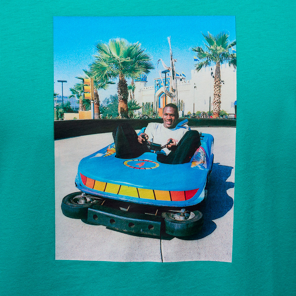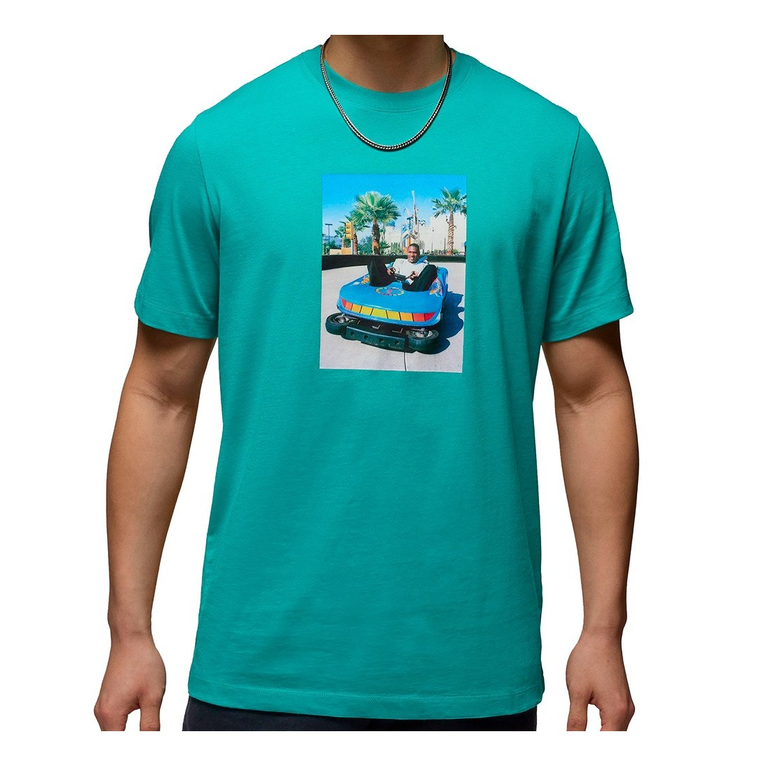 Samarreta Jordan Brand MJ Photo Graphic Washed Teal. La samarreta Jordan per a home és una peça que combina estil urbà i comoditat. Confeccionada en 100% cotó de densitat mitjana, ofereix una sensació suau i agradable al contacte amb la pell, ideal per a ús diari. El seu disseny presenta un estampat gràfic a la part frontal que destaca l'icònic Michael Jordan, aportant un toc distintiu i modern. La configuració estàndard garanteix llibertat de moviment sense sacrificar l'estil.