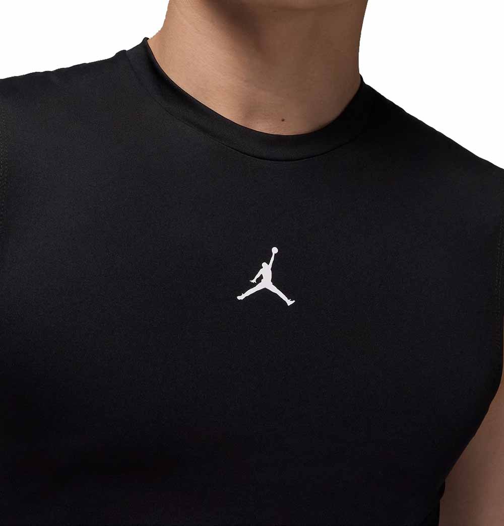 Samarreta Jordan DF Sport Compressive Top Black. Aquesta capa base de tirants, que es pot portar sola o juntament amb altres peces, està confeccionada amb un teixit Knit de punt suau i incorpora una tecnologia de capil·larització de la suor per mantenir la transpirabilitat i la comoditat.