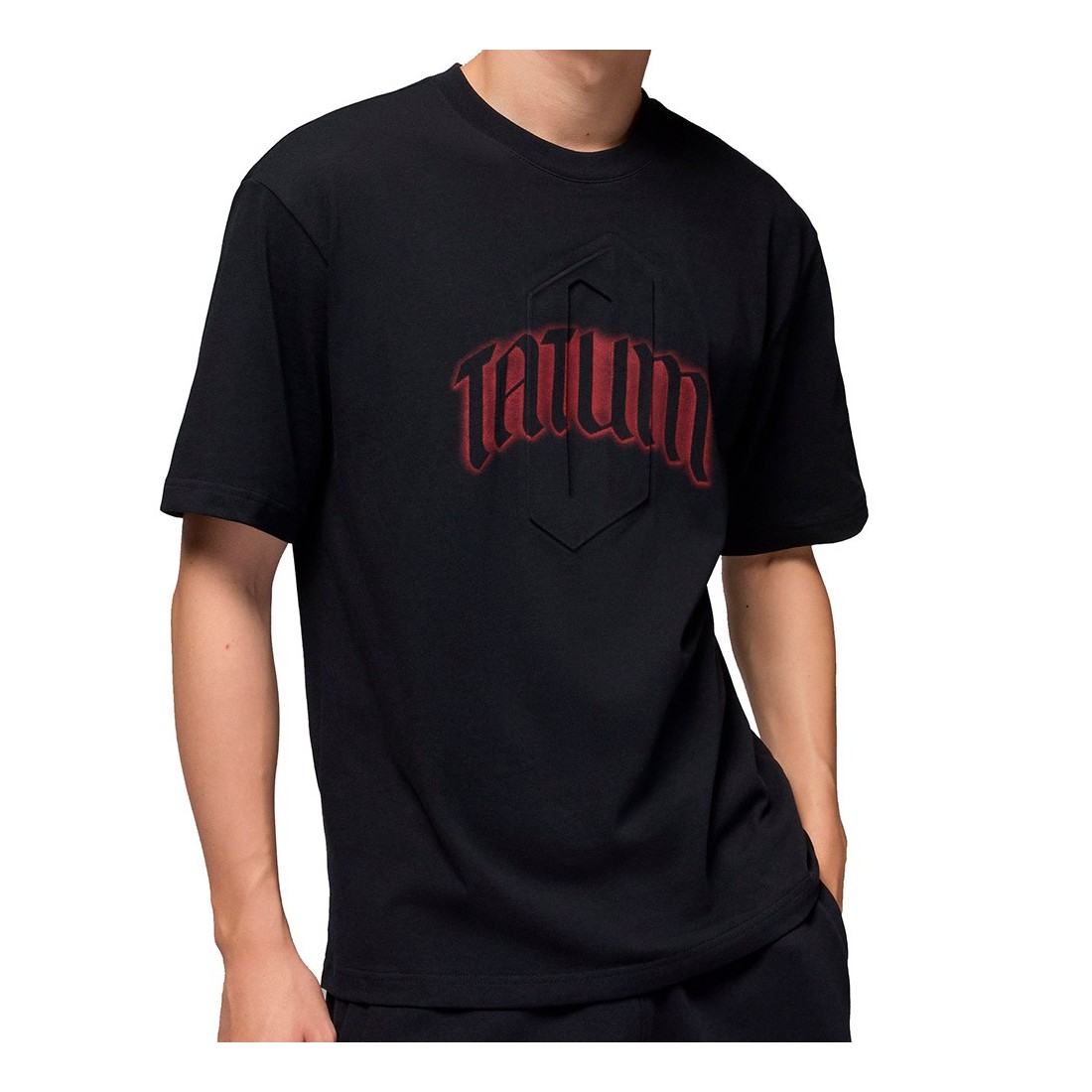Samarreta Jordan Tatum Graphic Black. La samarreta Jordan Tatum és una peça pensada per als que volen portar l'estil del seu jugador favorit al seu dia a dia. Confeccionada amb cotó suau i resistent, ofereix una sensació lleugera i molt còmoda, ideal tant per entrenar com per ús casual. La seva cort clàssic de màniga curta garanteix llibertat de moviment i un ajustament relaxat. El gran gràfic “Tatum” al centre del pit destaca com a protagonista, reforçant la identitat esportiva i urbana de la samarreta.