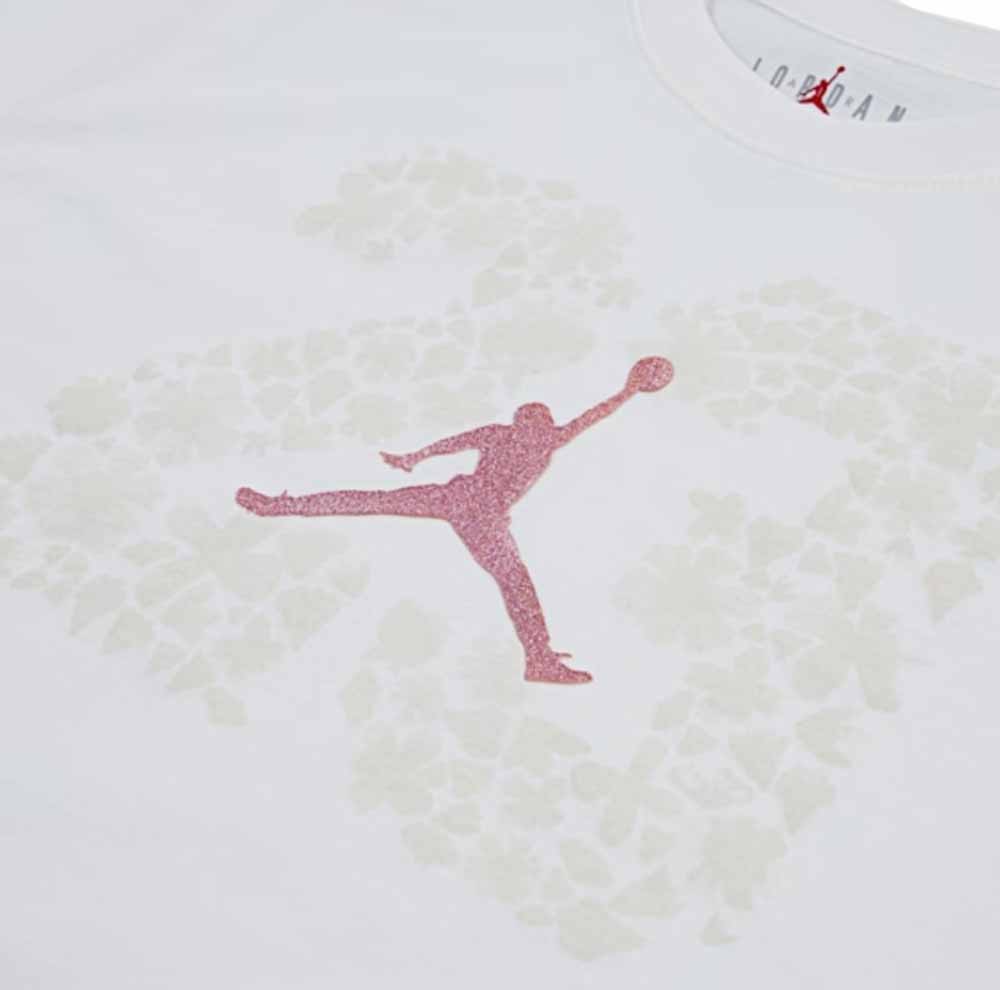 Samarreta Junior Jordan 23 Floral SS. Aquesta samarreta Jordan totalment de cotó presenta un gràfic original i divertit amb el logo Jumpman estampat al pit. Un ajustament estàndard i un aspecte que la converteixen en una elecció fàcil.