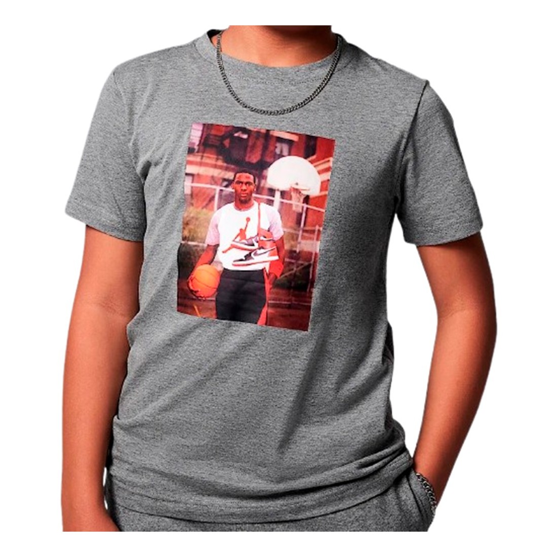 Samarreta Junior Jordan MJ Photo Grey. Aquesta còmoda samarreta de cotó és d'aquells dissenys que tant t'agraden. Poca cosa més podem dir sobre aquest disseny, preferim que treguis les teves conclusions.