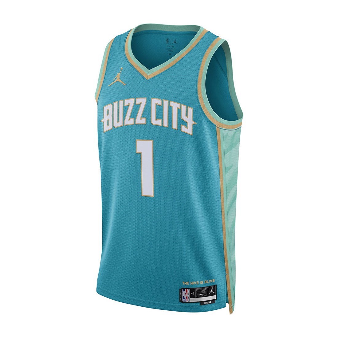 Junior LaMelo Ball Charlotte Hornets 23-24 City Edition Swingman. La col·lecció NBA City Edition 2023/24 és una celebració de l'enllaç entre l'equip i la seva ciutat respectiva. Cada equip de la NBA té un uniforme City Edition únic inspirat en símbols icònics i uniformes passats. Aquests uniformes destaquen les cultures, les comunitats i la història úniques que donen a cada franquícia l'orgull local.
