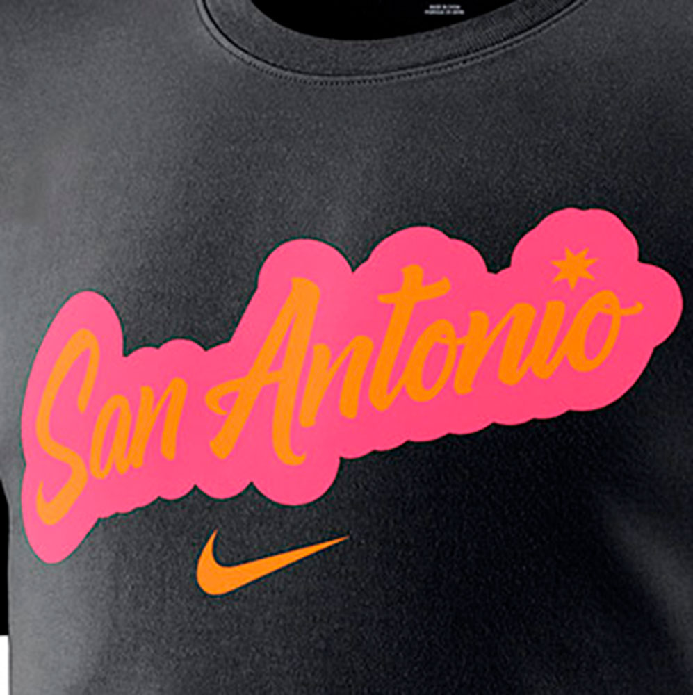 Samarreta San Antonio Spurs 25-26 Essential City Edition Black. On siguis, res no t'impedeix recolzar el teu equip favorit. El teu amor és incondicional. Demostra-ho amb aquesta samarreta amb el logotip especial de la col·lecció City Edition. Confeccionada en cotó suau i lleuger, la seva cort està dissenyada perquè et moguis amb total llibertat a la pista.