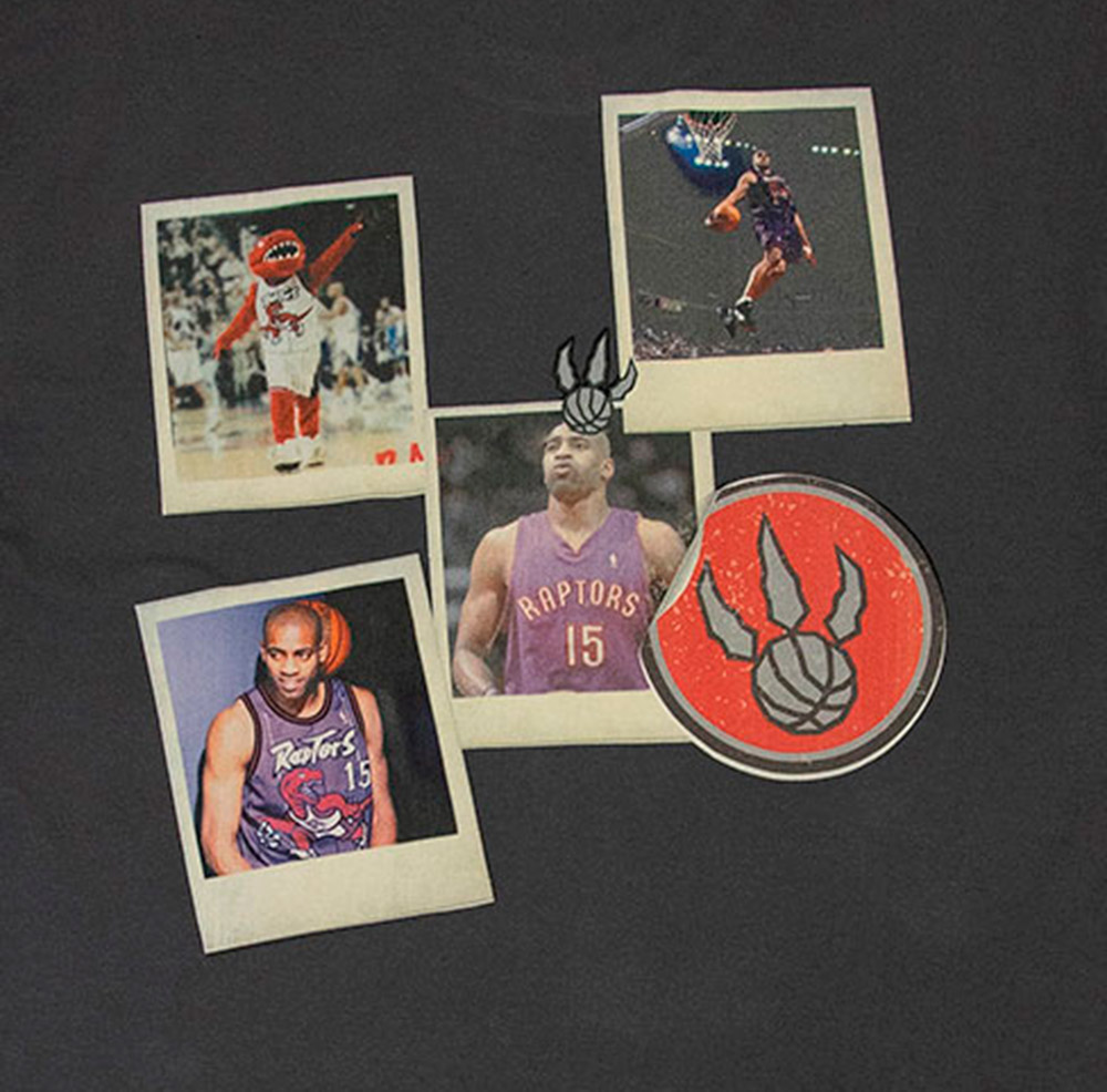 Samarreta Vince Carter Raptors Retro Photos Black. Aquesta samarreta és una peça imprescindible per als amants del bàsquet i la moda urbana. Dissenyada en un to gris elegant, destaca per la seva gran versatilitat i per un acabat premium que combina a la perfecció amb qualsevol estil. Destaca per tenir a l'esquena un gran gràfic fotogràfic amb imatges de moments icònics que ret homenatge a la història de Carter. La seva cort relaxat aporta llibertat de moviment, ideal per als que busquen un look casual amb un toc esportiu.