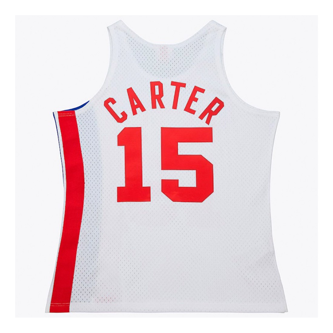 Vince Carter New Jersey Nets 05-06 White Retro Swingman. Aquesta samarreta retro estil Swingman de Vince Carter celebra una de les seves temporades més memorables a la NBA. Fabricada en 100% polièster lleuger amb teixit mesh transpirable, garanteix ventilació fins i tot en dies calorosos o quan fas activitats. Incorpora gràfics oficials del jugador -nom i dorsal- així com emblemes clàssics de la franquícia i la lliga. El coll i cises són acanalats per a més comoditat i mantenen la seva forma després de diversos rentats. La seva cort regular permet que quedi solta sense exagerar el volum, ideal tant per destacar el llegat esportiu com per combinar amb shorts, pantalons esportius o roba casual urbana.