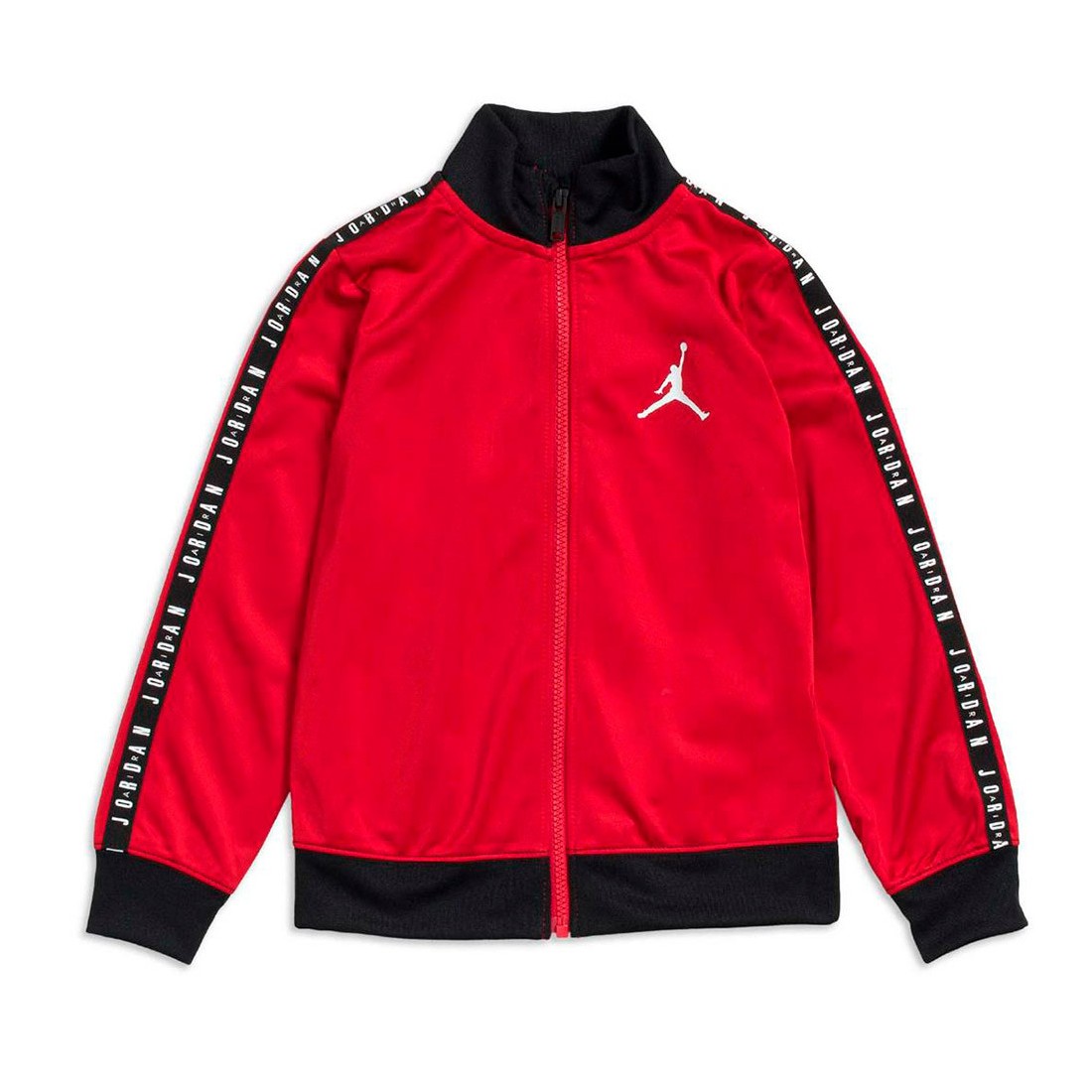 Xandall Kids Jordan Tricot Red Black. Eleva la comoditat del teu fill amb el conjunt de jaqueta i pantalons esportius Jordan Classics Tricot amb cremallera completa per a nens petits. Aquest combo esportiu farà que el teu fill enèrgic s'emboliqui en una calidesa elegant i llesta per jugar.