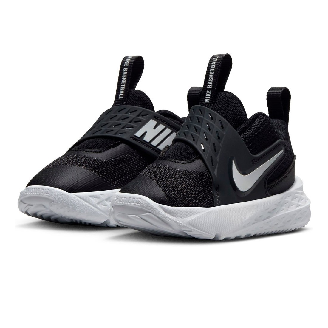 Baby Nike Team Hustle D 12 Black. Las Hustle D son las zapatillas de baloncesto perfectas para encontrar el equilibrio en la cancha y disfrutar de un ajuste firme y cómodo en cuestión de segundos. La correa permite abrir las zapatillas completamente y conseguir un ajuste ceñido en un abrir y cerrar de ojos. La espuma suave proporciona una sensación elástica y amortiguada, mientras que la suela exterior de goma ofrece agarre y flexibilidad para jugar con seguridad en múltiples superficies.