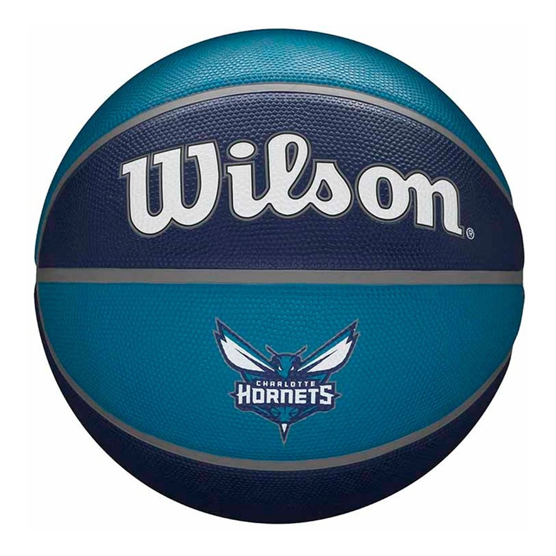 Balón Wilson Charlotte Hornets NBA Team Tribute Basketball. Esta pelota de baloncesto Wilson de los Charlotte Hornets presenta un patrón alterno de los colores primarios y secundarios del equipo en sus paneles de superficie, y destaca el logotipo de la franquicia NBA de manera prominente. La Performance Cover está diseñada para enfrentarse a cualquier cancha que elija, construida con un agarre duradero para superficies rugosas. Talla 7.