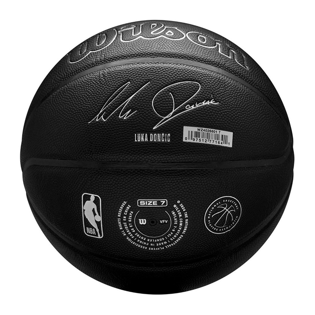Balón Wilson NBA Player Evergreen Luka Doncic Sz 7. De vez en cuando, un jugador llega a la liga que revoluciona el juego. Celebra la creatividad y la habilidad de uno de los mejores jugadores de todos los tiempos con el balón de baloncesto Wilson NBA Player Nightmode. La elegante funda negra Pure Feel está adornada con una firma plateada y el nombre de tu jugador favorito.