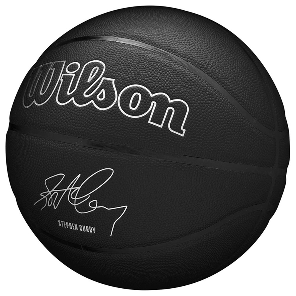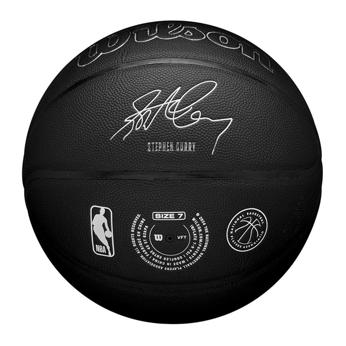 Balón Wilson NBA Player Evergreen Stephen Curry Sz 7. De vez en cuando, un jugador llega a la liga que revoluciona el juego. Celebra la creatividad y la habilidad de uno de los mejores jugadores de todos los tiempos con el balón de baloncesto Wilson NBA Player Nightmode. La elegante funda negra Pure Feel está adornada con una firma plateada y el nombre de tu jugador favorito.