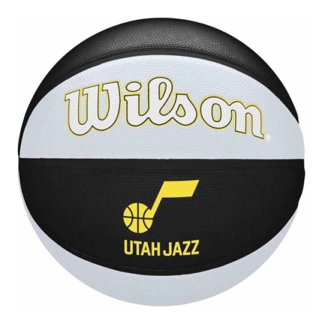 Balón Wilson Utah Jazz NBA Team Tribute Basketball. Este balón de baloncesto Wilson de los Utah Jazz presenta un patrón alterno de los colores primarios y secundarios del equipo en sus paneles de superficie, y destaca el logotipo de la franquicia NBA de manera prominente. La Performance Cover está diseñada para enfrentarse a cualquier cancha que elija, construida con un agarre duradero para superficies rugosas. Talla 7.