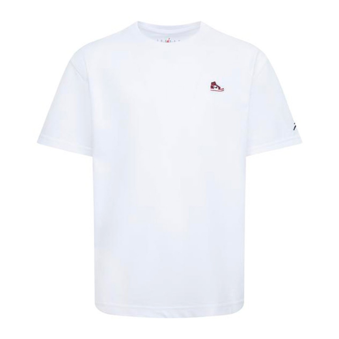 Camiseta Junior Jordan AJ1 Patch White. Complementa tus AJ1 con esta camiseta de algodón y poliéster, que luce un pequeño parche de zapatillas. Los hombros caídos crean un ajuste relajado, el cuello redondo sin etiqueta proporciona una sensación cómoda y el corte regular es amplio para mayor libertad de movimiento.