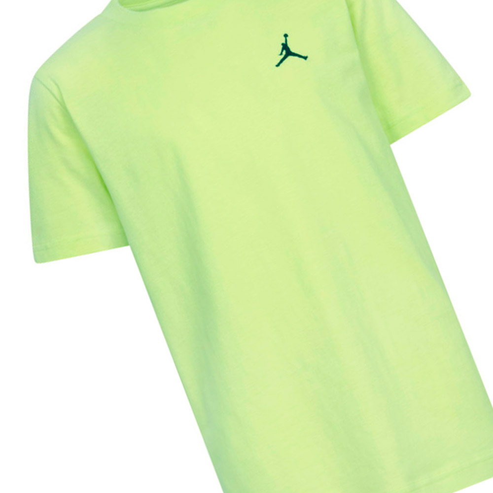 Camiseta Junior Jordan Jumpman Air Embroidered Lemon Twist. La camiseta Jordan Jumpman Air combina estilo y comodidad para los jóvenes aficionados al baloncesto. Confeccionada en 100% algodón, ofrece una sensación suave y agradable al contacto con la piel. Su diseño de manga corta y cuello redondo presenta el icónico logotipo Jumpman bordado en el pecho izquierdo, aportando un toque distintivo.