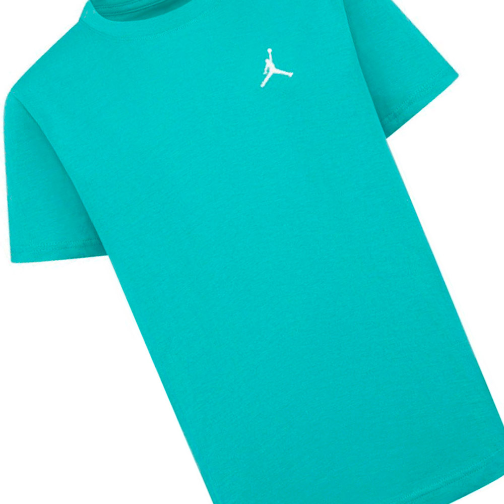 Camiseta Junior Jordan Jumpman Air Embroidered Wasehd Teal. La camiseta Jordan Jumpman Air combina estilo y comodidad para los jóvenes aficionados al baloncesto. Confeccionada en 100% algodón, ofrece una sensación suave y agradable al contacto con la piel. Su diseño de manga corta y cuello redondo presenta el icónico logotipo Jumpman bordado en el pecho izquierdo, aportando un toque distintivo.