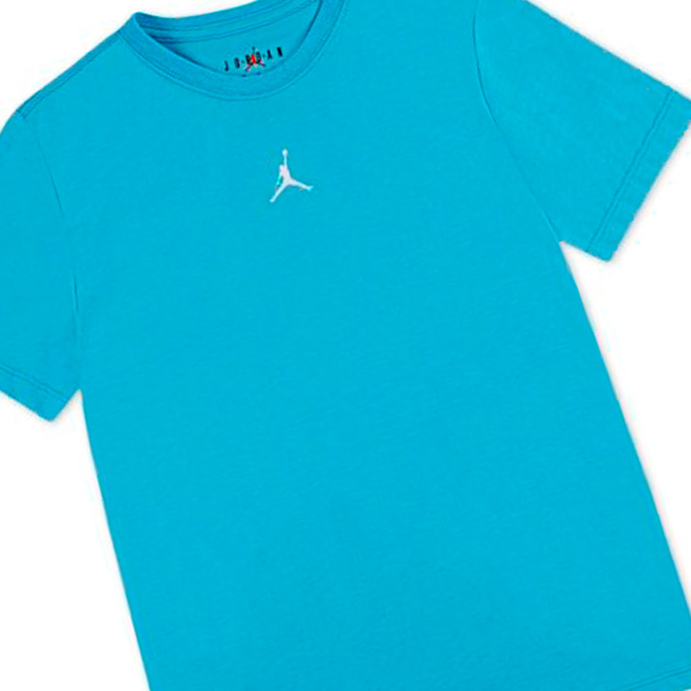 Camiseta Junior Jordan Sport Code Blue Chill. La camiseta Jordan Sport Code combina estilo urbano con funcionalidad técnica pensada para uso diario. Confeccionada en tejido de punto ligero con una mezcla que favorece la ventilación, ofrece frescura y sensación cómoda durante todo el día. Su corte juvenil (junior) ofrece un ajuste moderno que no queda ni muy holgado ni muy ceñido, ideal para acompañar movimiento. El diseño incorpora un gráfico llamativo con el nombre del jugador o la línea de firma, junto al logo Jumpman en un lugar visible. Los ribetes de cuello y mangas están reforzados para mantener la forma tras múltiples lavados.