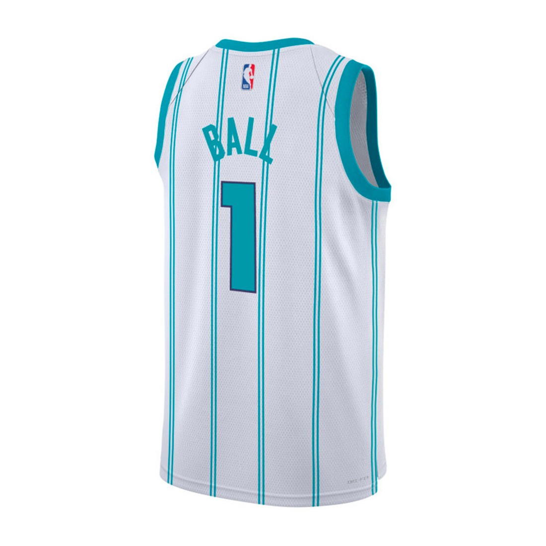 Junior LaMelo Ball Charlotte Hornets 23-24 Association Edition Swingman. La camiseta Association Edition, confeccionada con un fondo blanco, es un hilo común que une a todos los equipos de la NBA. Esta camiseta de los Charlotte Hornets se inspira en la que llevan los profesionales en la cancha, desde los colores y los estampados del equipo hasta una malla ligera que capilariza el sudor. Mantén la transpirabilidad y la frescura dentro y fuera de la cancha mientras animas a tu equipo favorito y practicas el deporte que más te gusta.