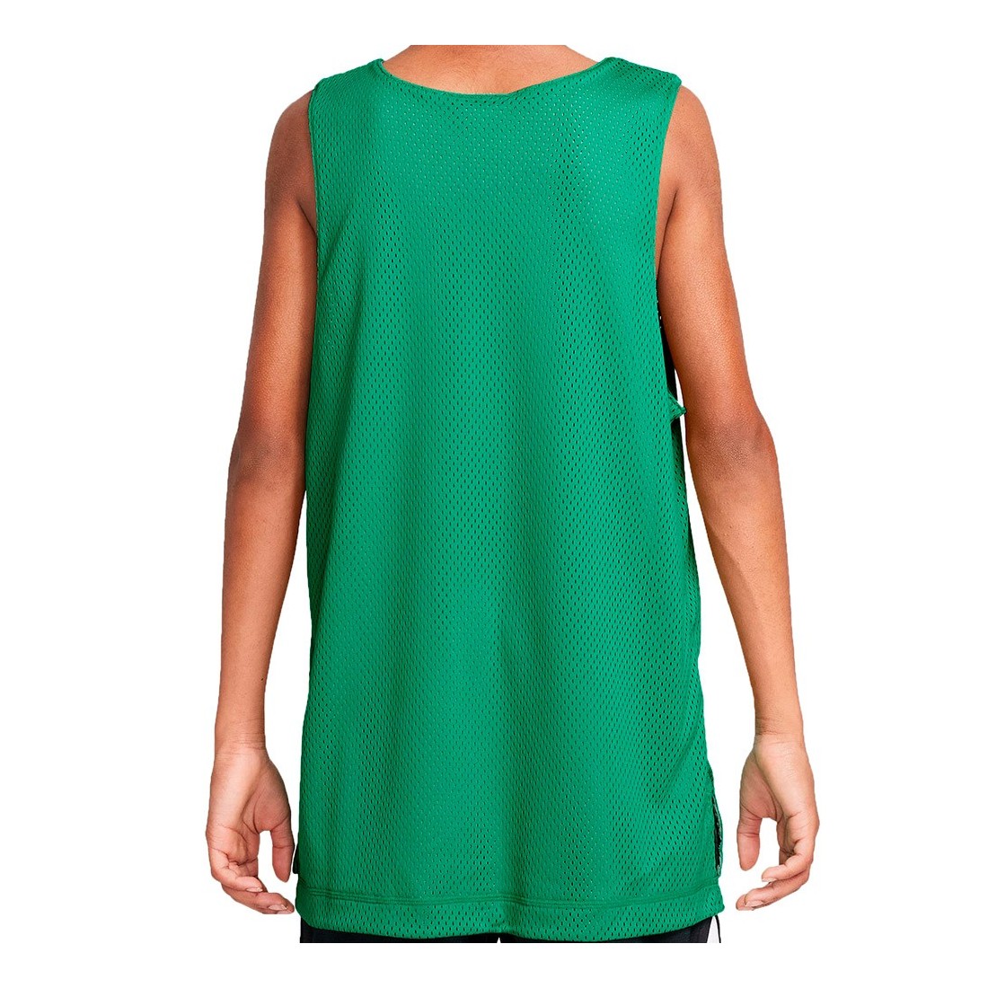 Camiseta Junior Nike Reversible Dri-FIT Green. Esta amplia camiseta reversible se lo pone fácil para cambiar de equipo o de look. Confeccionada con malla ligera y tecnología de capilarización del sudor, mantiene la frescura y la comodidad mientras juega.