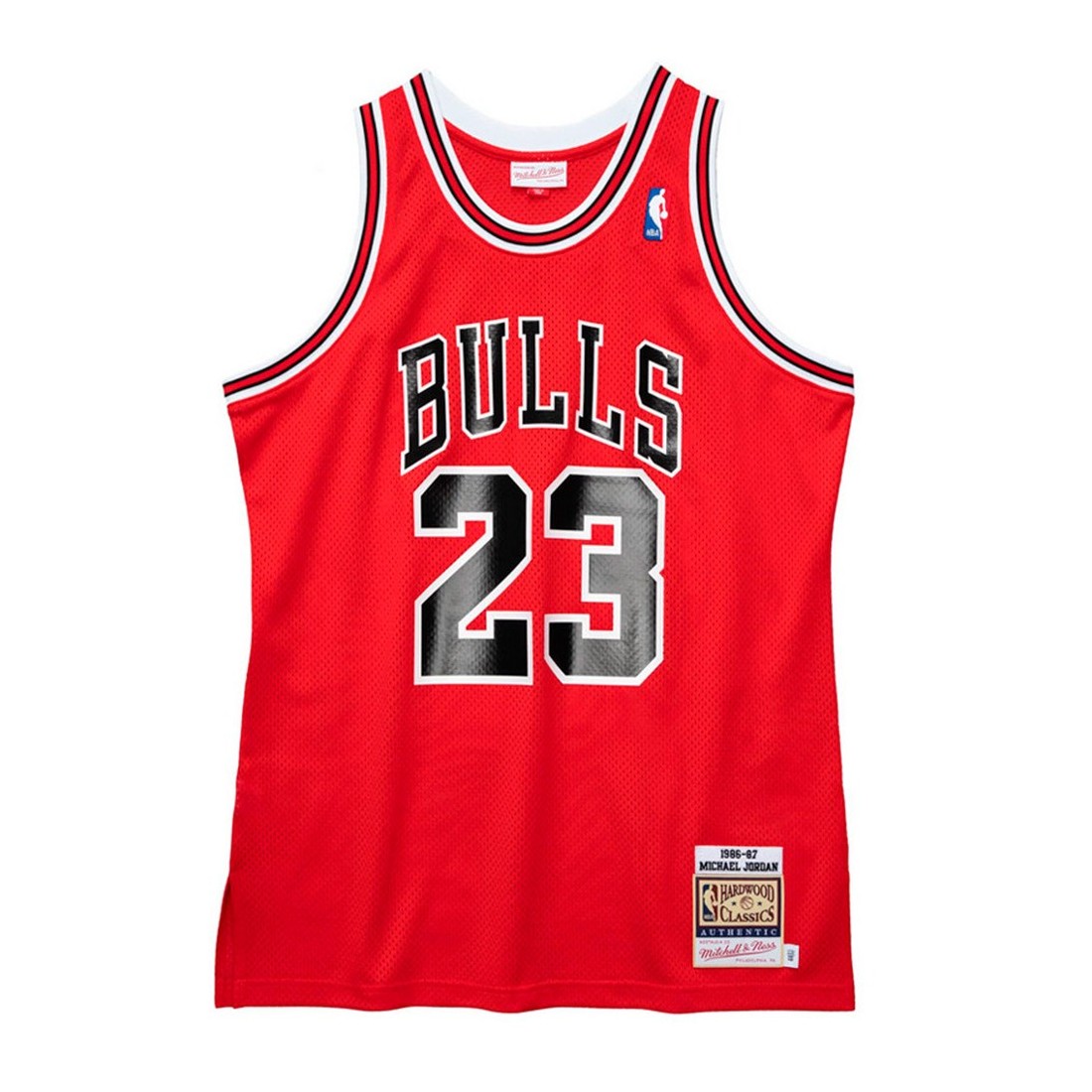Michael Jordan Chicago Bulls 86-87 Red Authentic. Los Chicago Bulls y Michael Jordan volvieron a ocupar portada en 1987, en concreto en el concurso de mates en el que Jordan se llevó el campeonato. Ese año fue especial para todos aquellos fanáticos de la NBA, ya que ese año el concurso se retransmitiría íntegro en directo y emplearía una cámara superlenta para recrearse en los vuelos. Confeccionada con tejidos premium de malla y detalles únicos, esta es la opción perfecta para jugar, entrenar y para llevar los colores de una prenda de ropa que representa una parte de la increíble historia de la NBA.