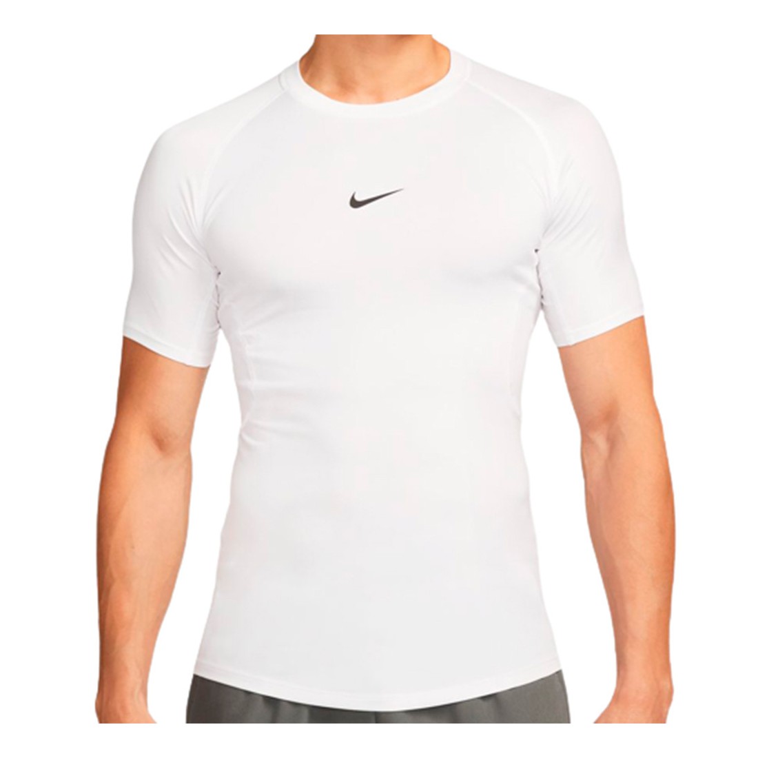 Camiseta Nike Pro Fitness Dri-FIT White. La colección Nike Pro te ofrece seguridad para ayudarte a darlo todo, tanto si estás empezando a hacer ejercicio como si haces entrenamientos de alta intensidad. Esta camiseta de ajuste entallado te ofrece la suavidad y la elasticidad que buscas para practicar tu deporte o actividad favorita. Además, nuestros diseñadores han creado un dobladillo redondeado por dos razones: para ofrecer una mayor protección y un ajuste seguro al meterla por debajo del pantalón.