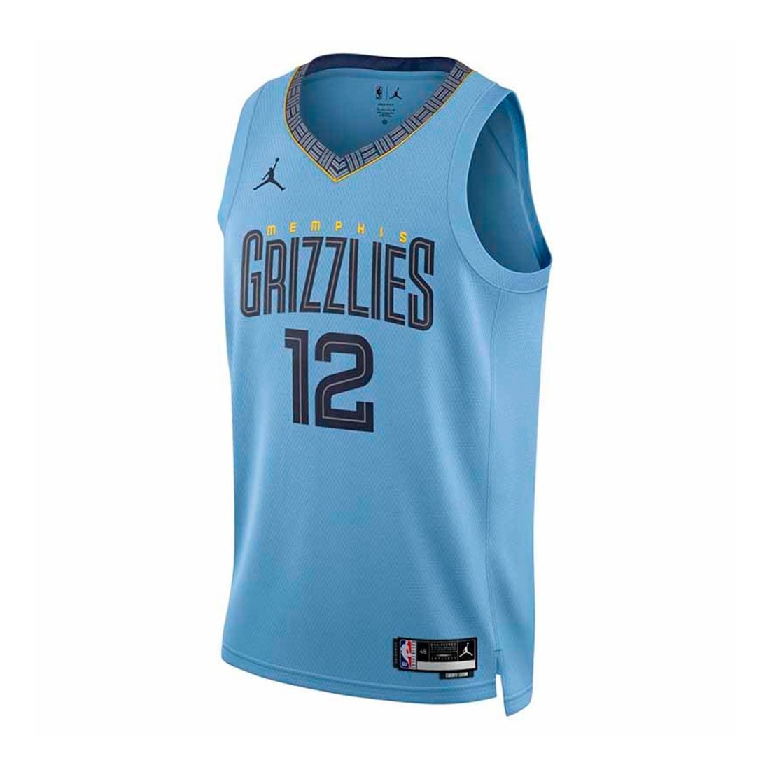 Ja Morant Memphis Grizzlies 22-23 Statement Edition Swingman. Esta camiseta Jordan NBA Swingman de Ja Morant y los Memphis Grizzlies destaca por su llamativo esquema que alterna colores y detalles. Se trata de una prenda que simboliza la fuerza, el espíritu y la actitud competitiva de los jugadores. Cuenta con un tejido de doble punto premium y un ajuste holgado y sencillo, ideal para los aficionados.