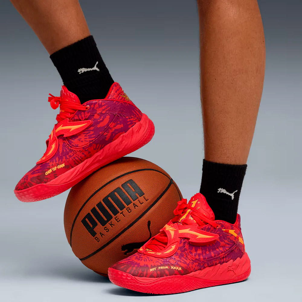 Junior Puma MB.05 Crowd Surf. Las PUMA MB.05 son la última colaboración con LaMelo Ball, diseñadas para quienes buscan rendimiento y estilo en la cancha y fuera de ella. Destacan por su entresuela con tecnología NITROFOAM™, que ofrece máxima amortiguación y respuesta explosiva. Su parte superior en mesh técnico aporta ligereza y transpirabilidad, mientras que los detalles únicos —como el patrón del número “1”, gráficos inspirados en los tatuajes de LaMelo y una suela con calavera integrada— las convierten en una pieza exclusiva. Modernas, atrevidas y cómodas, están pensadas para quienes juegan fuerte y marcan tendencia.